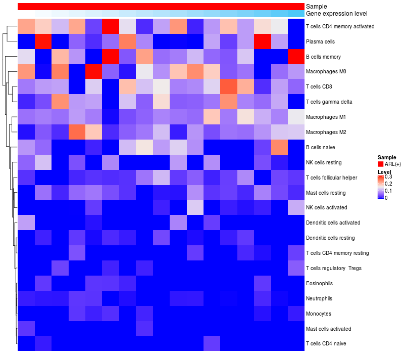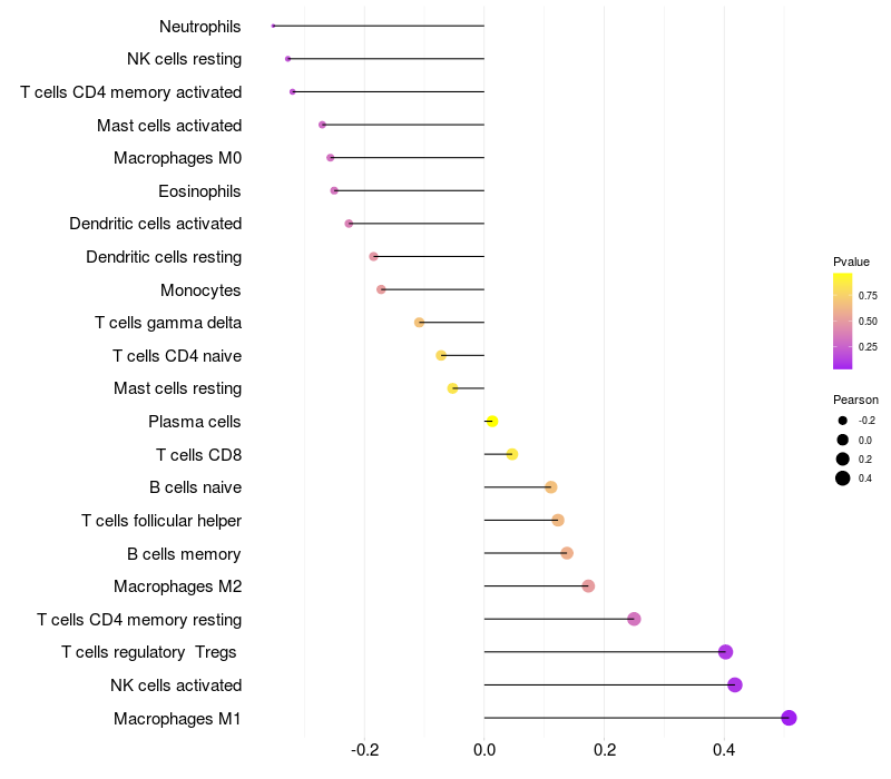 Relationship between gene expression and immune infiltrating cell level