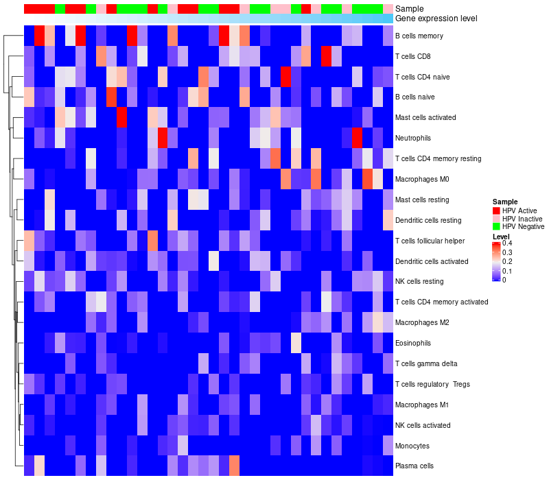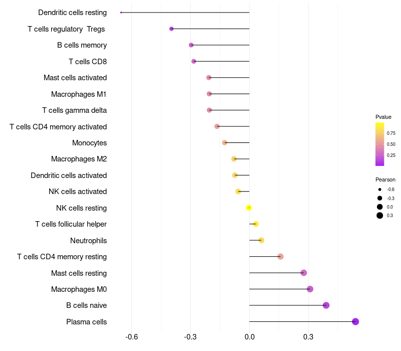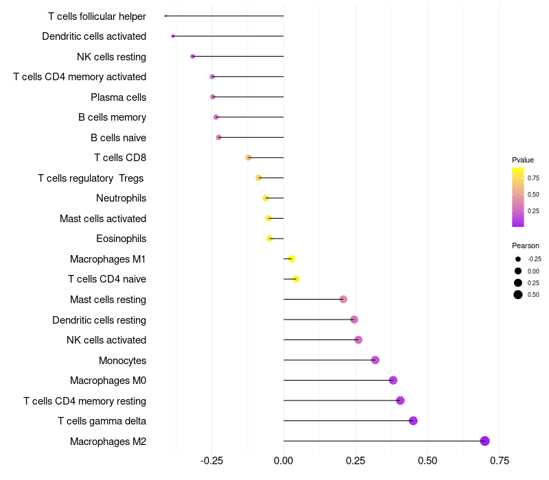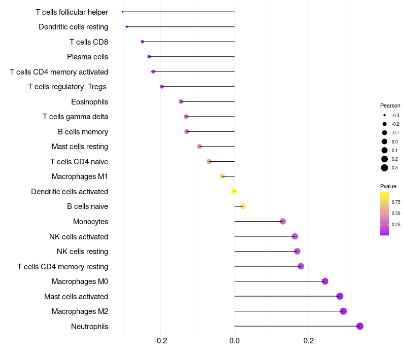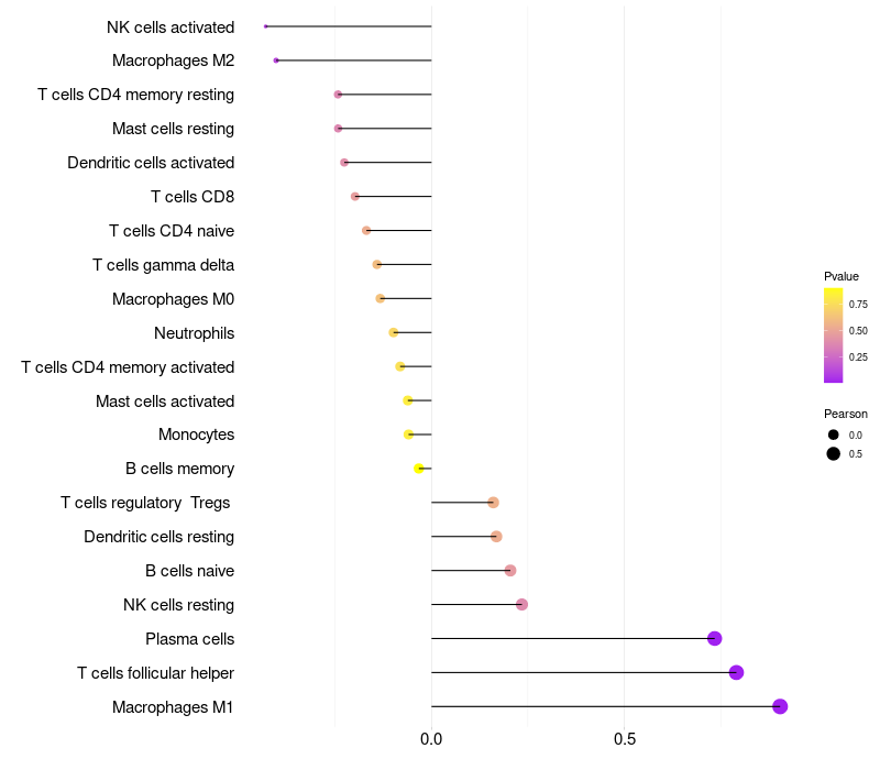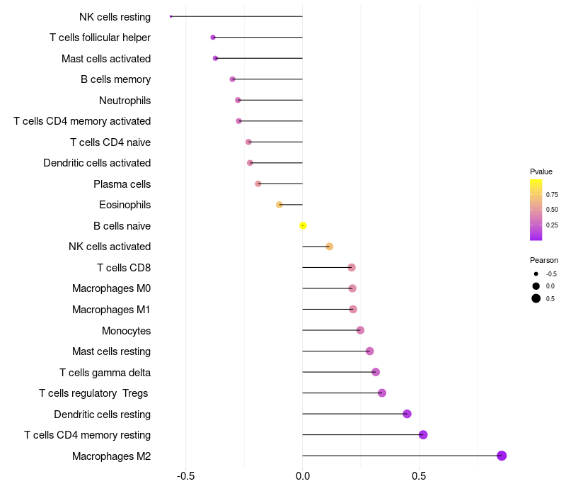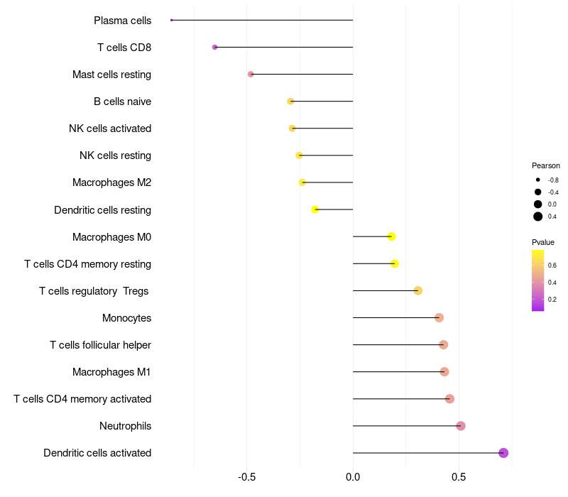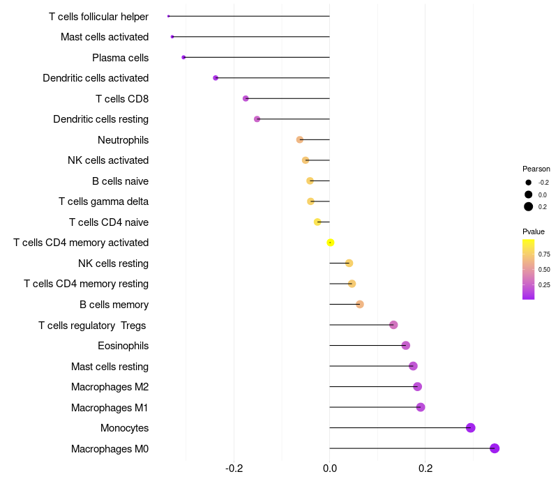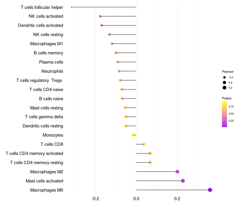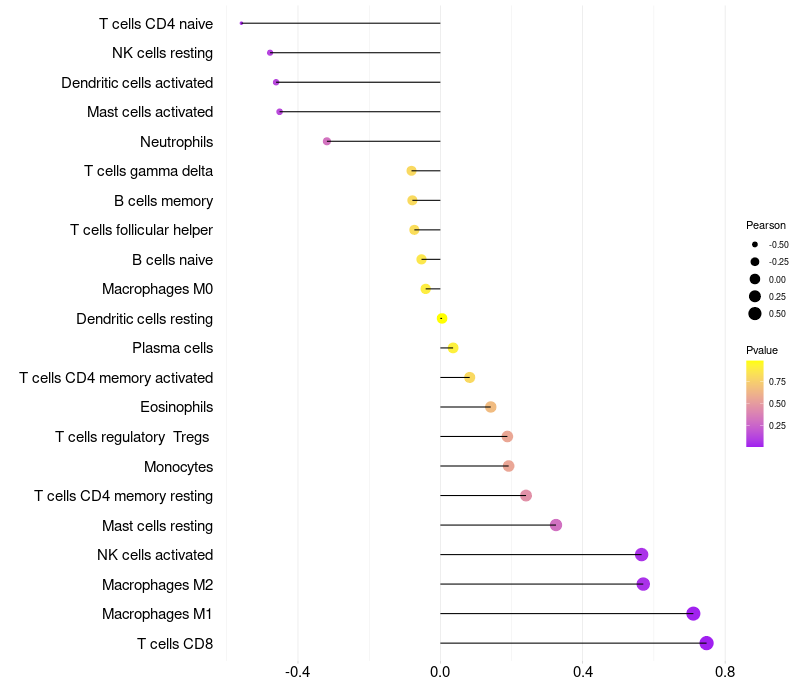 Lollipop of NNMT expression and immune infiltrating cell level correlation result in HPV+ samples