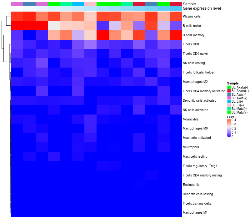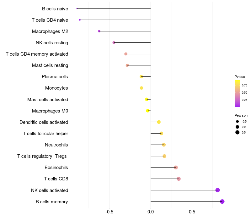 Relationship between gene expression and immune infiltrating cell level