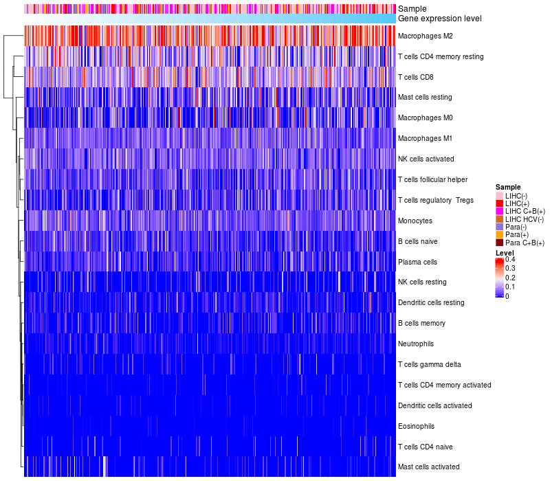 Relationship between gene expression and immune infiltrating cell level