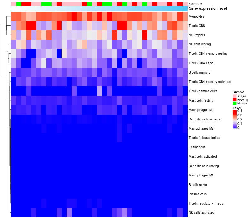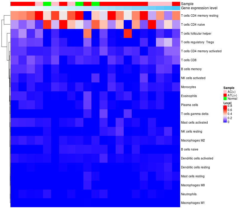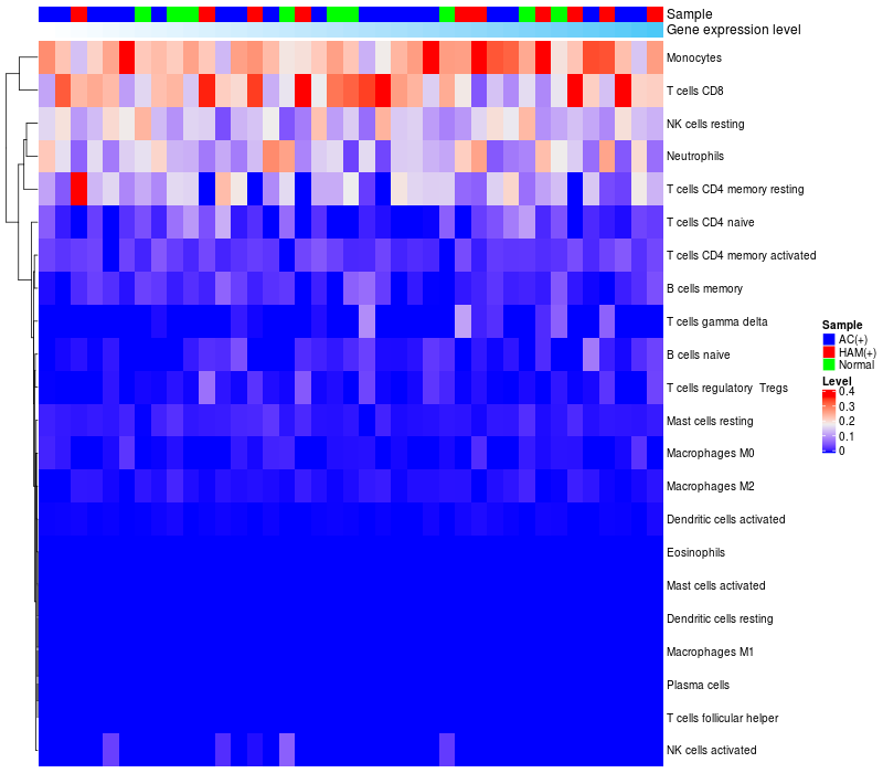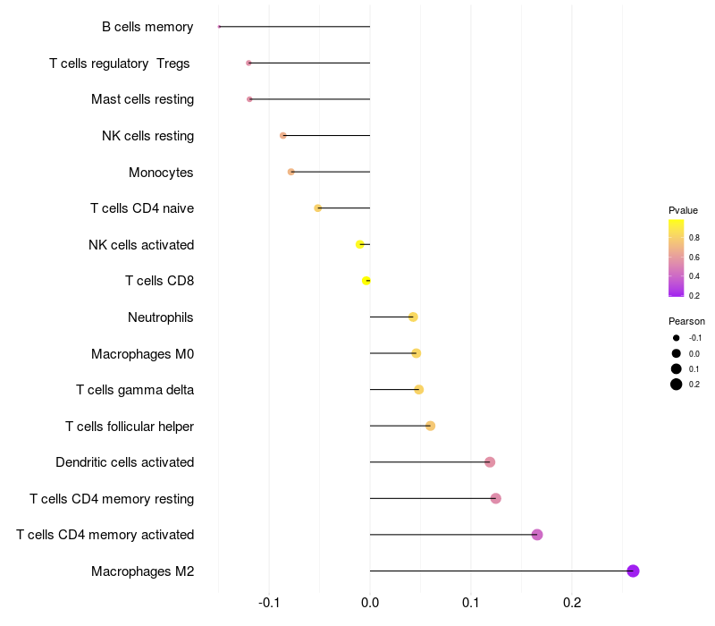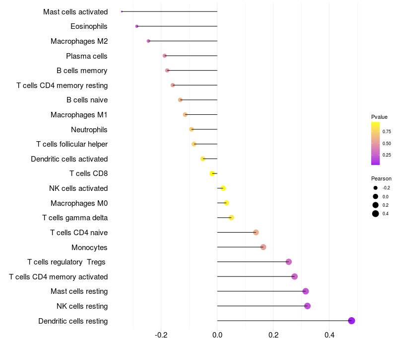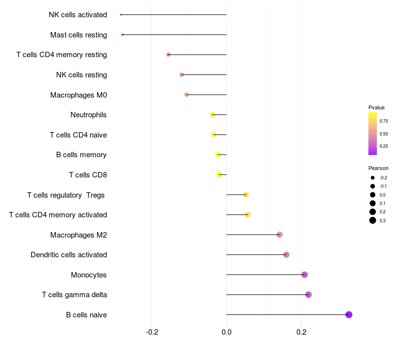 Lollipop of NPAS4 expression and immune infiltrating cell level correlation result in HTLV1+ samples