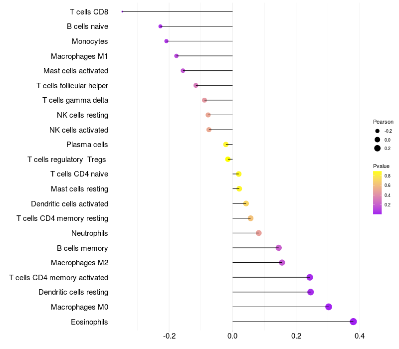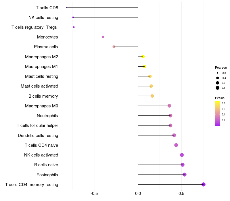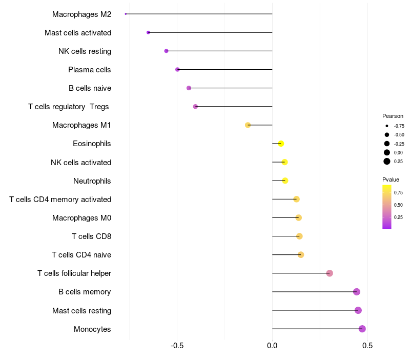 Lollipop of NPEPPS expression and immune infiltrating cell level correlation result in HBV+ Hepatocellular carcinoma samples