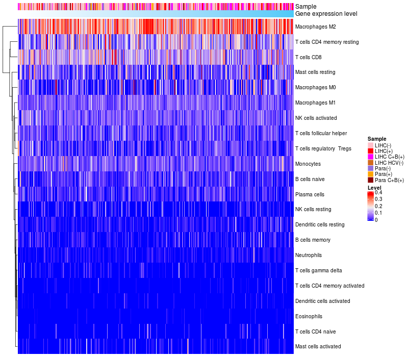 Relationship between gene expression and immune infiltrating cell level