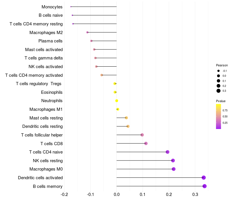 Lollipop of NPHS1 expression and immune infiltrating cell level correlation result in HBV+ samples
