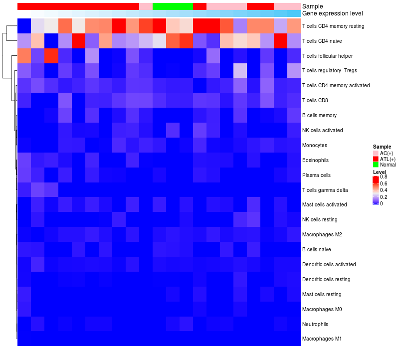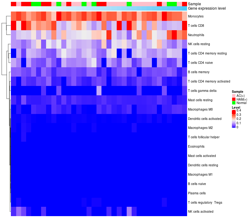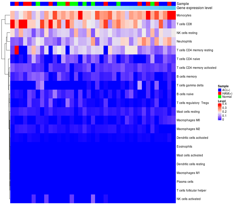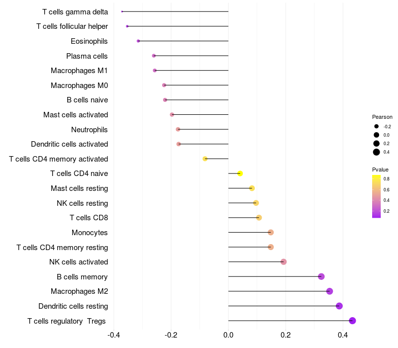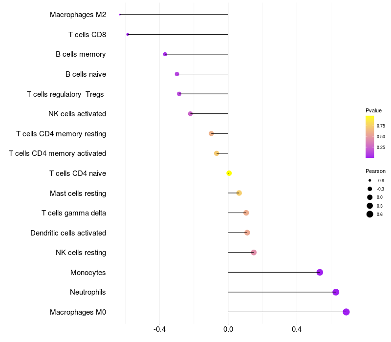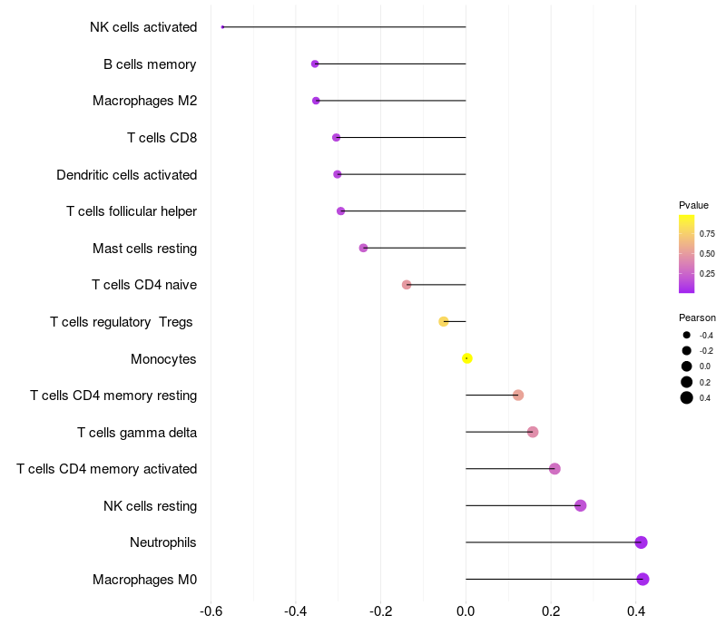 Lollipop of NPL expression and immune infiltrating cell level correlation result in HTLV1+ samples