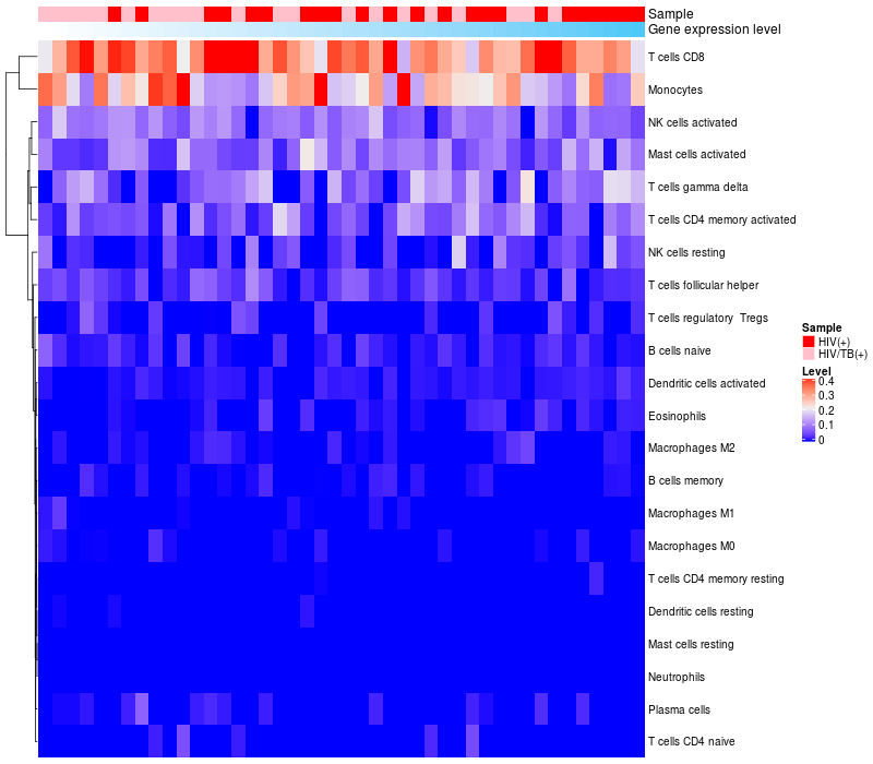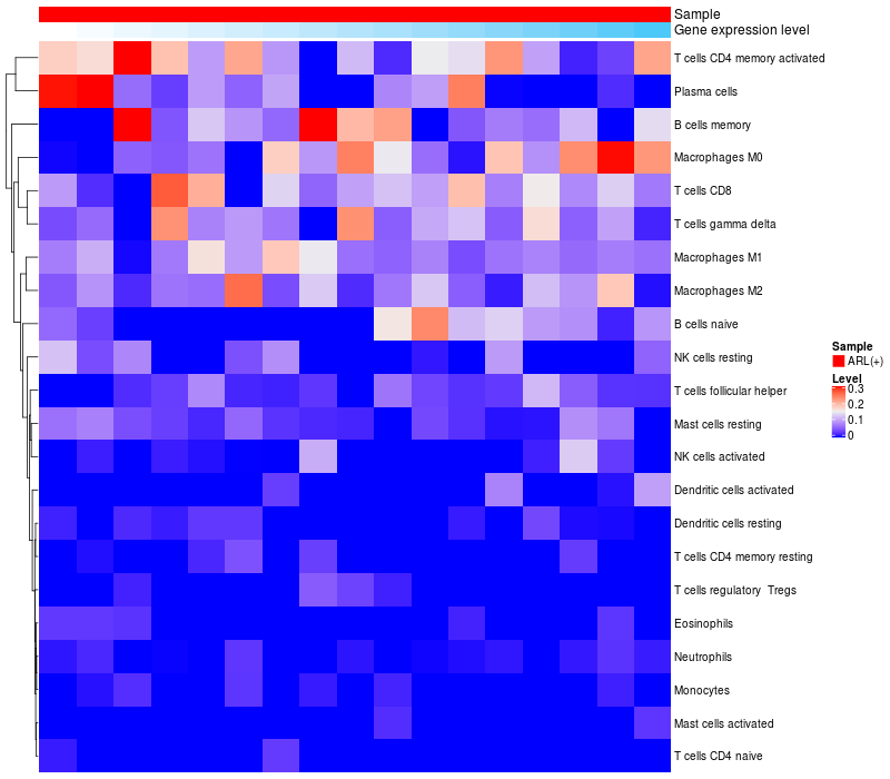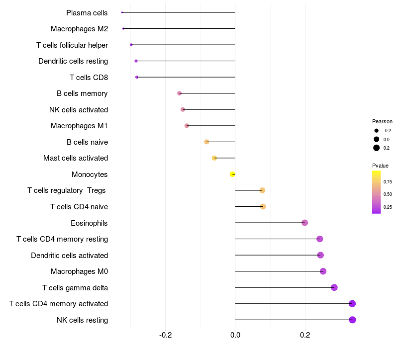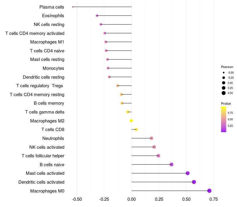 Relationship between gene expression and immune infiltrating cell level