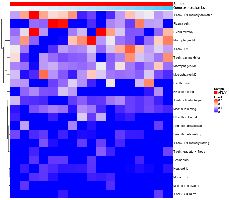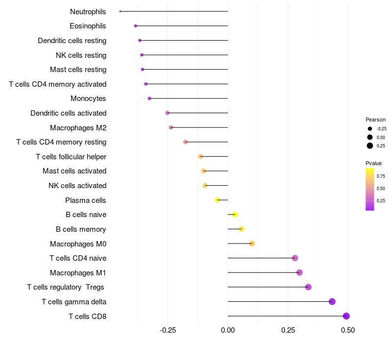 Relationship between gene expression and immune infiltrating cell level