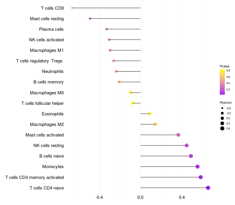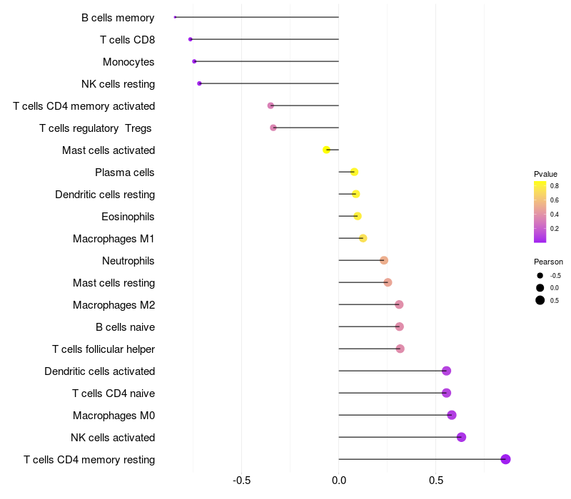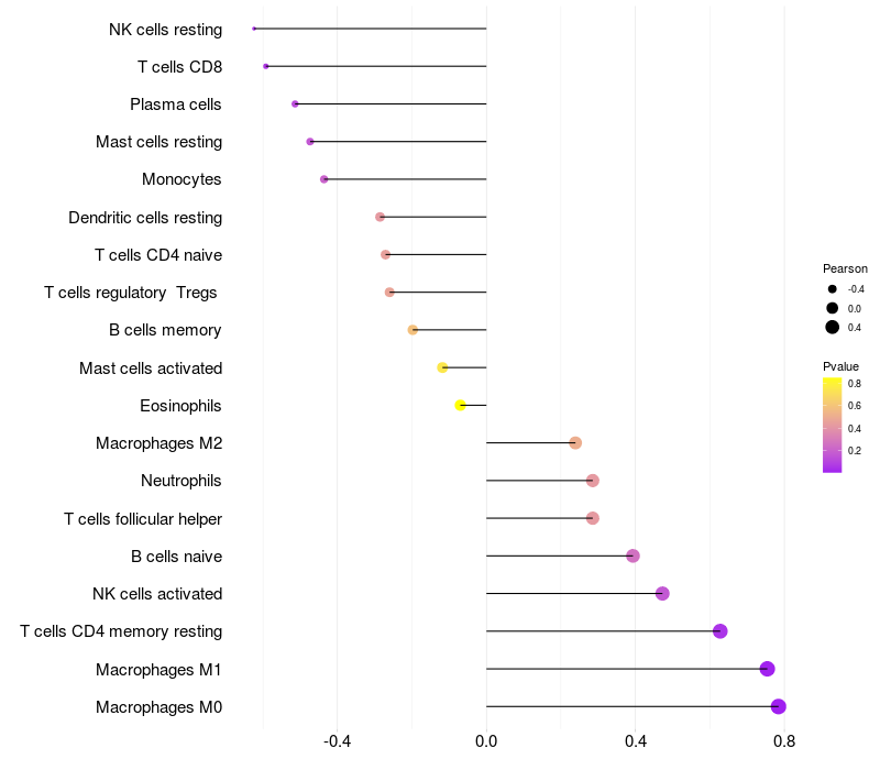 Lollipop of NRBP2 expression and immune infiltrating cell level correlation result in HBV+ Liver cirrhosis samples