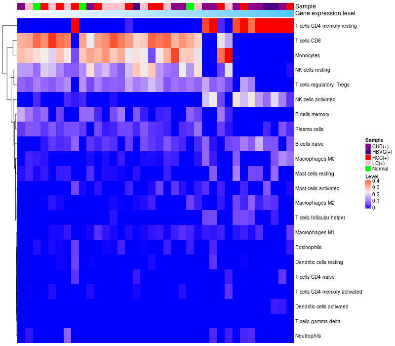 Relationship between gene expression and immune infiltrating cell level