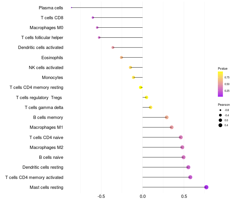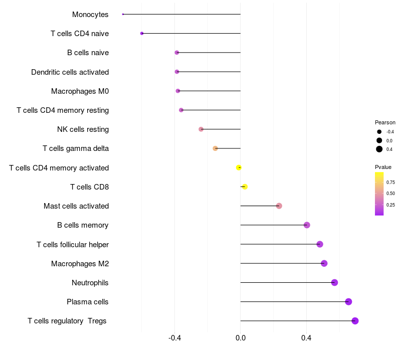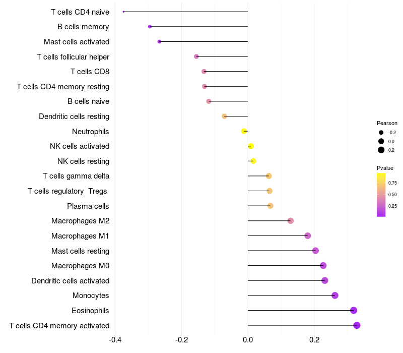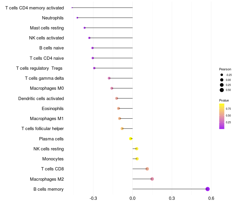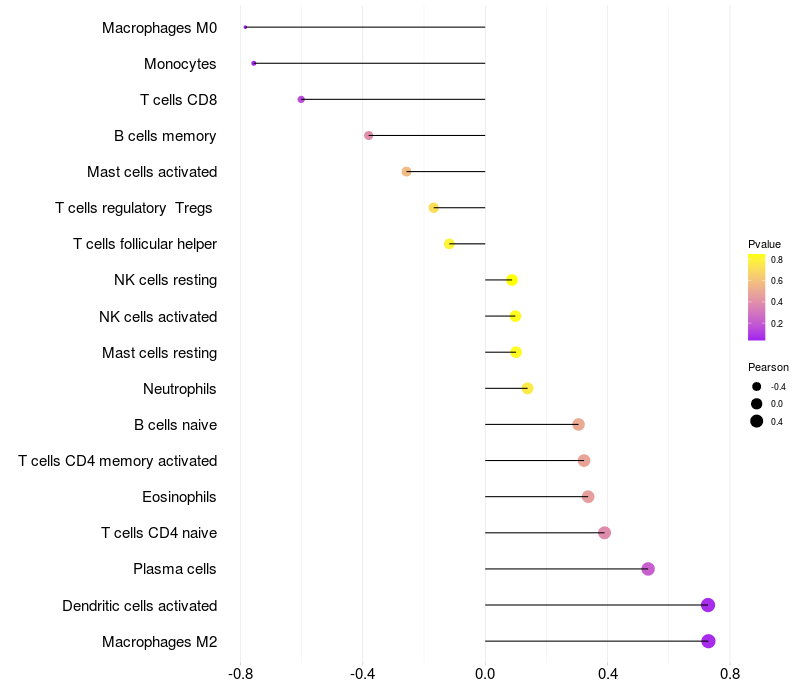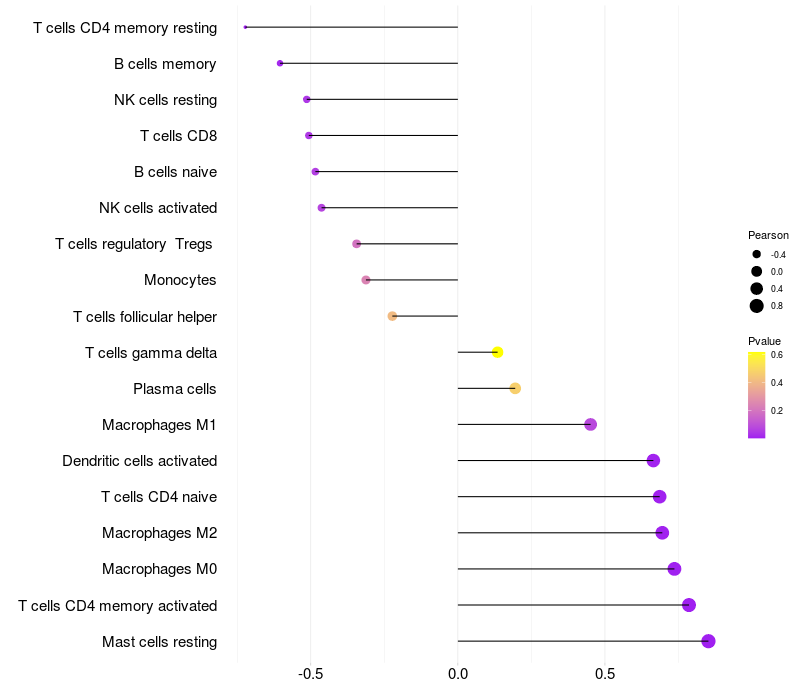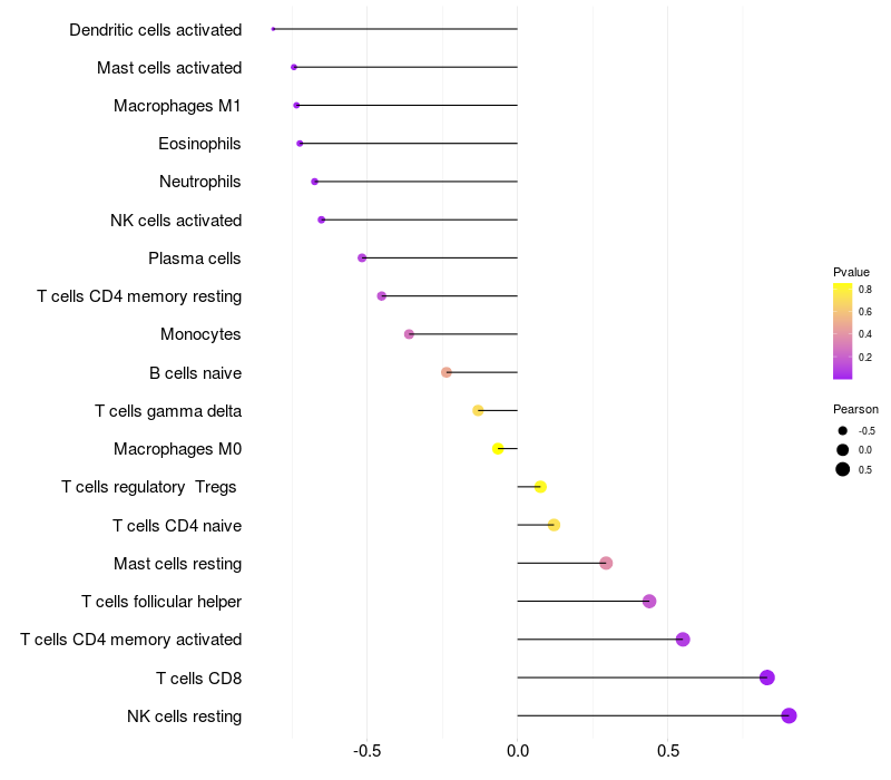 Lollipop of NSL1 expression and immune infiltrating cell level correlation result in EBV+ samples