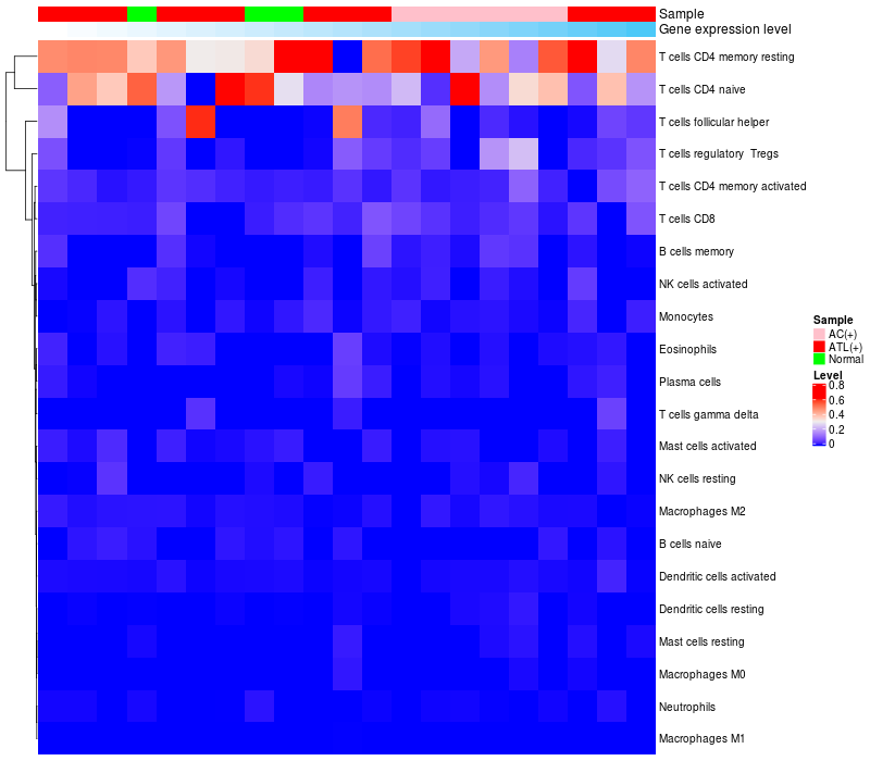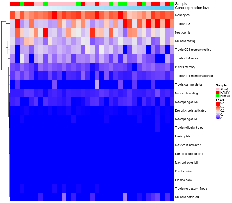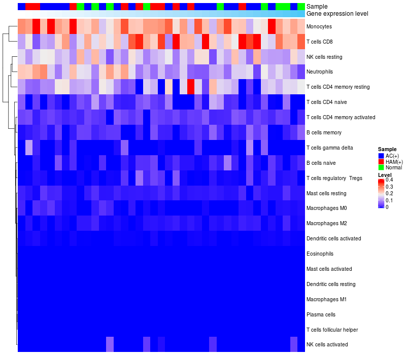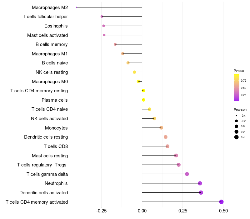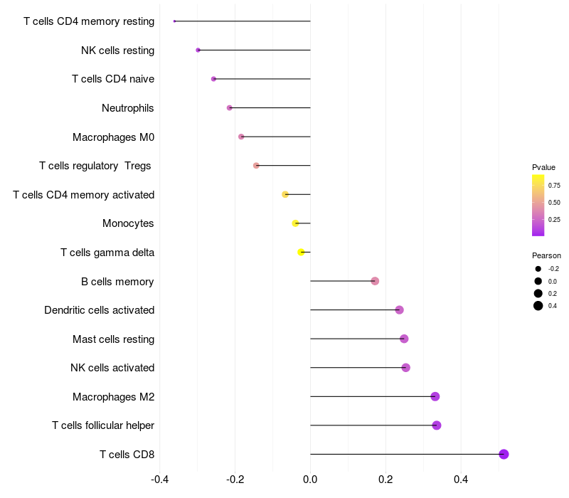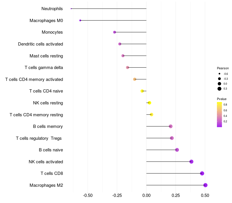 Lollipop of NUDT9 expression and immune infiltrating cell level correlation result in HTLV1+ samples