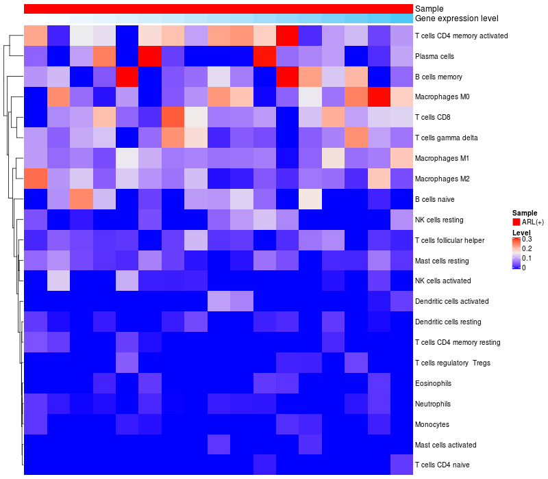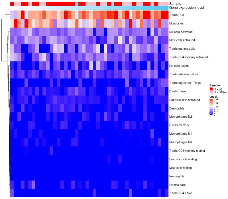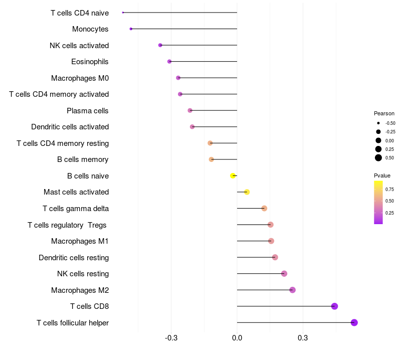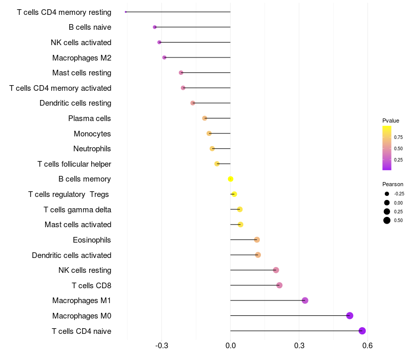 Relationship between gene expression and immune infiltrating cell level