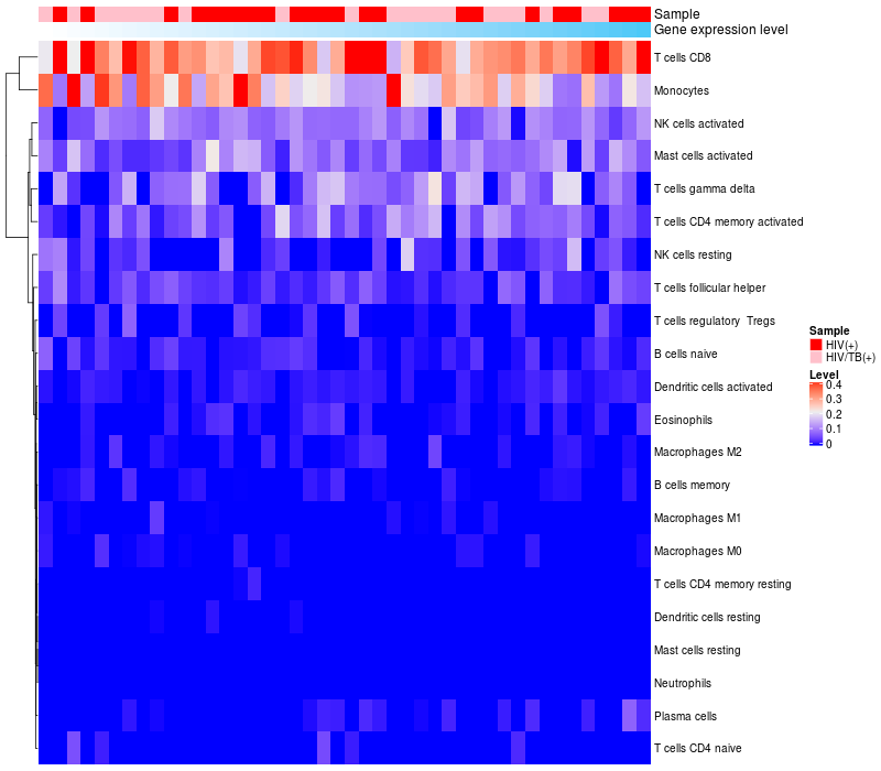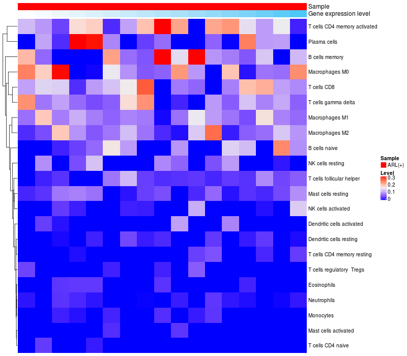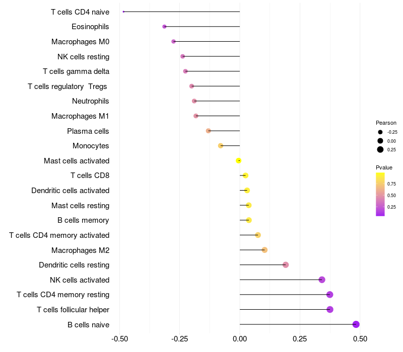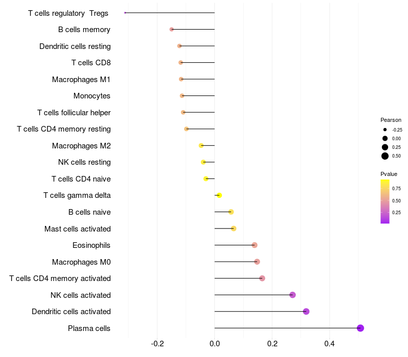 Relationship between gene expression and immune infiltrating cell level