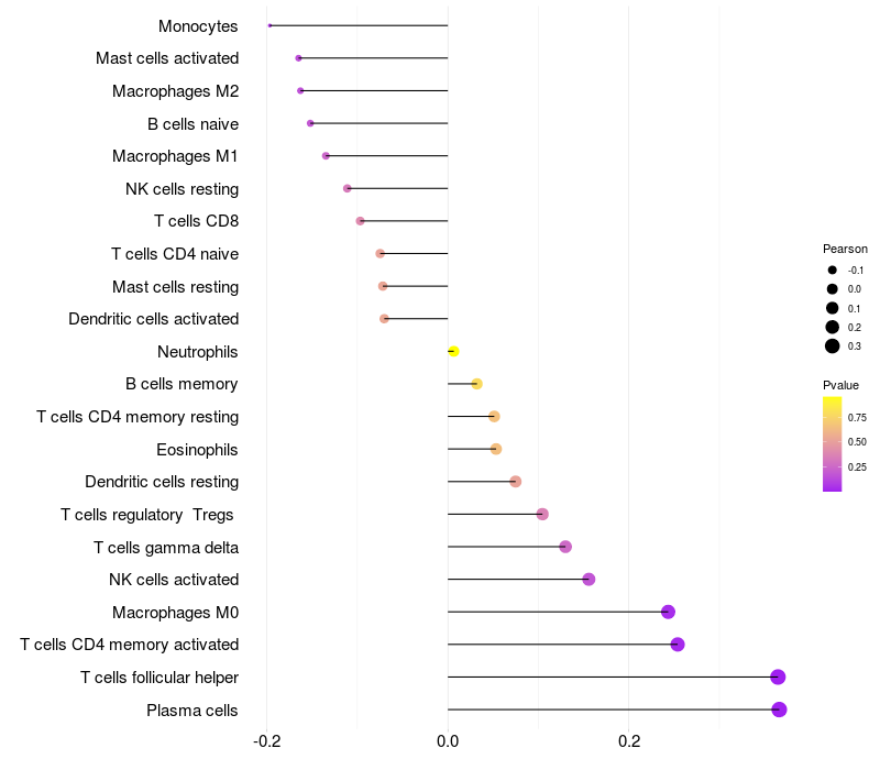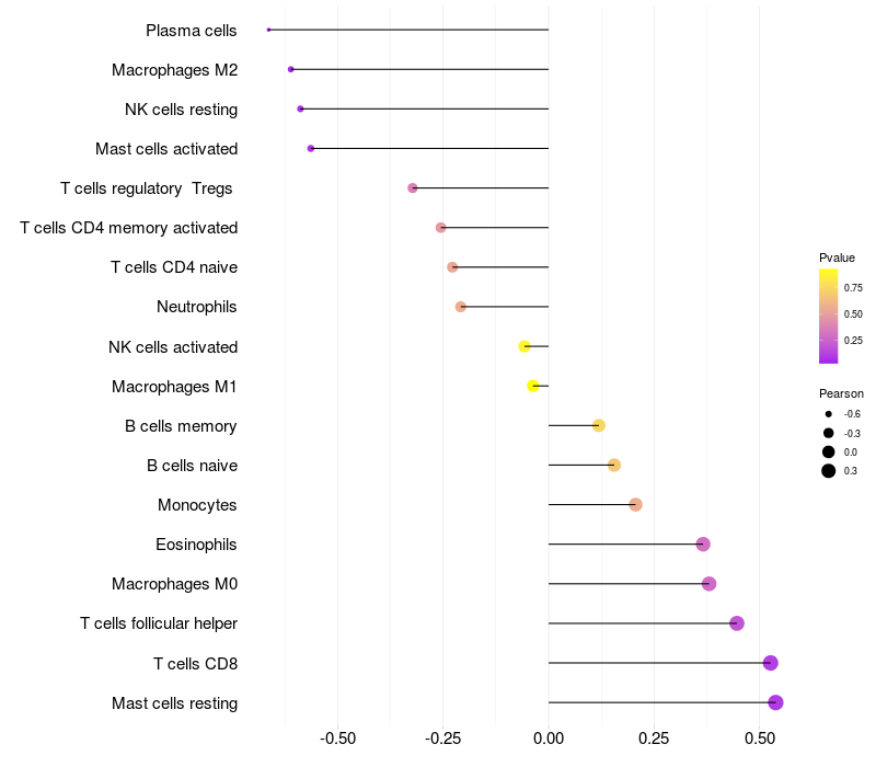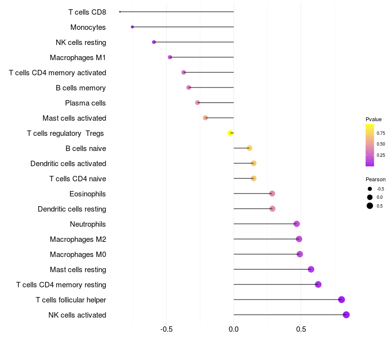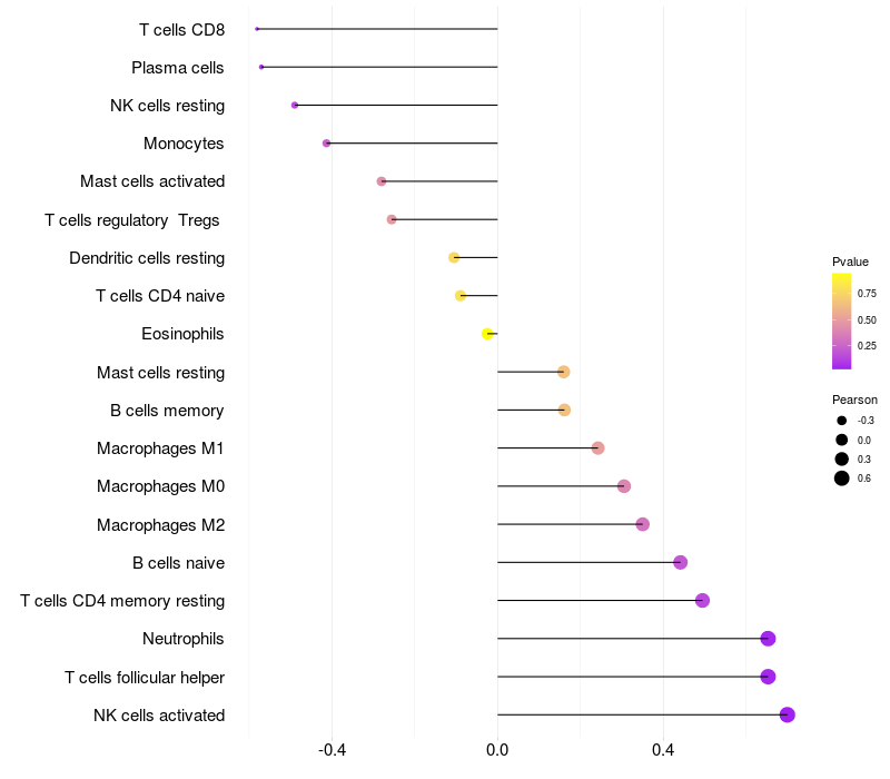 Lollipop of NUP188 expression and immune infiltrating cell level correlation result in HBV+ Liver cirrhosis samples