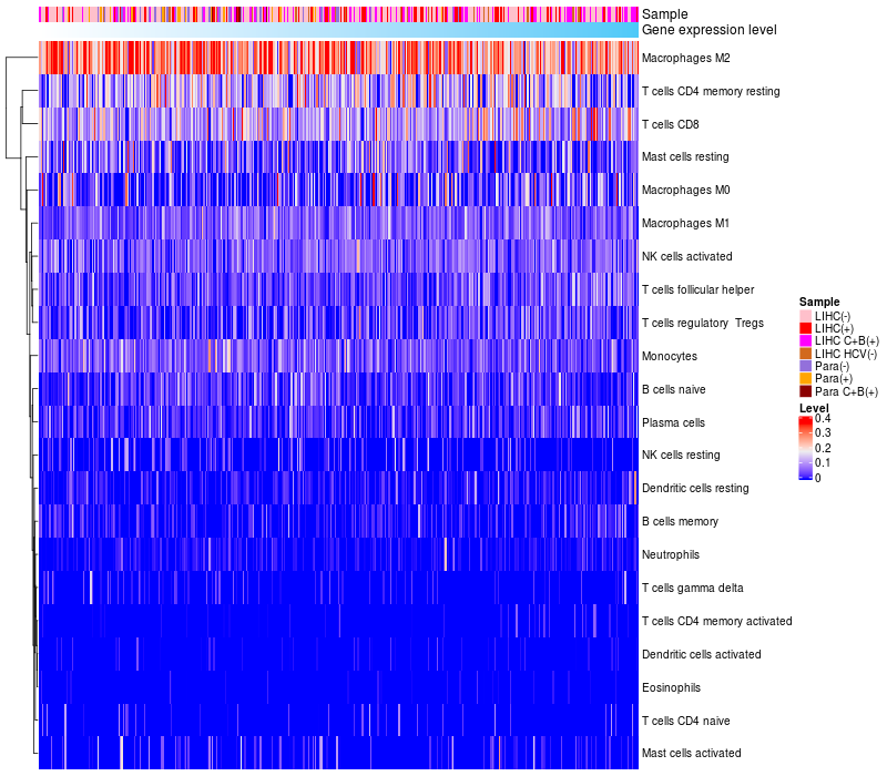 Liver hepatocellular carcinoma HCV (HBV+)(86), Liver hepatocellular carcinoma HCV (HBV-)(19), Liver hepatocellular carcinoma (HBV+)(209), Liver hepatocellular carcinoma (HBV+)(60), Paracancerous HCV (HBV+)(4), Paracancerous (HBV-)(28), Paracancerous (HBV+)(18) |