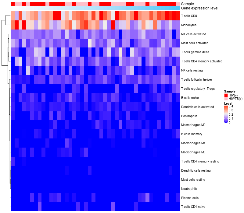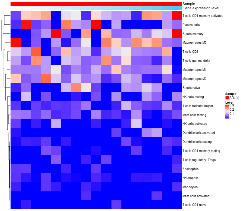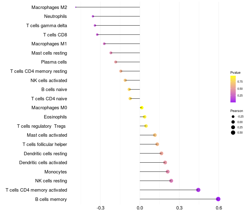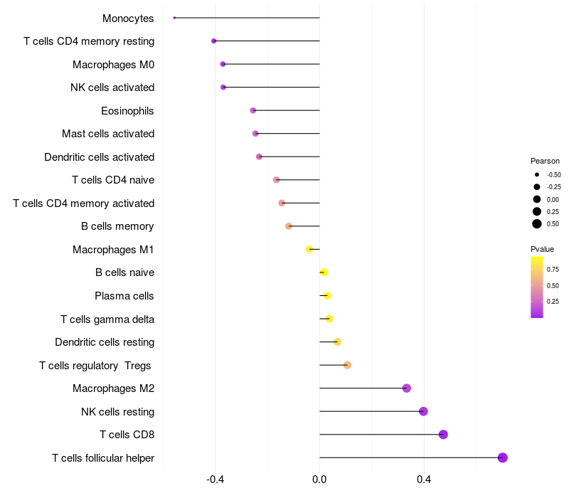 Relationship between gene expression and immune infiltrating cell level