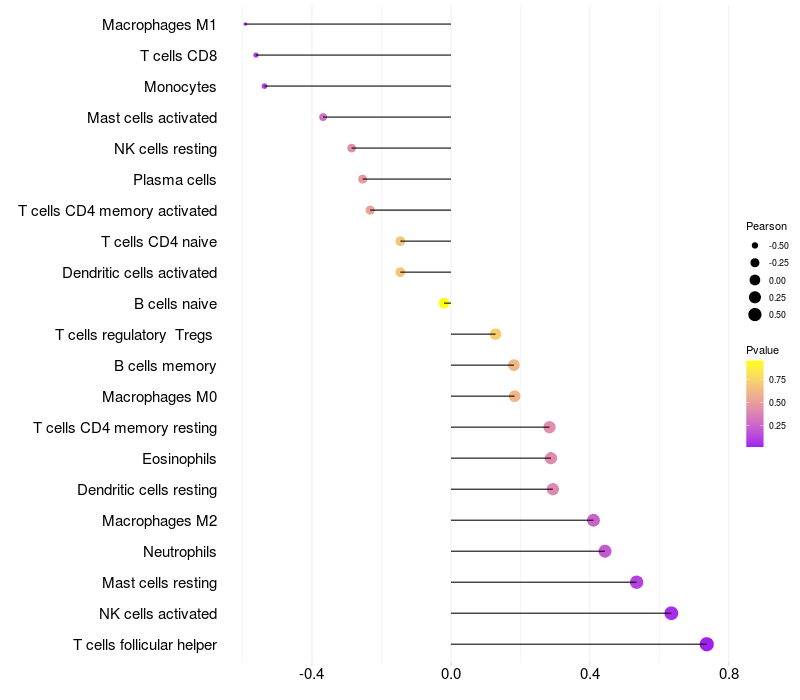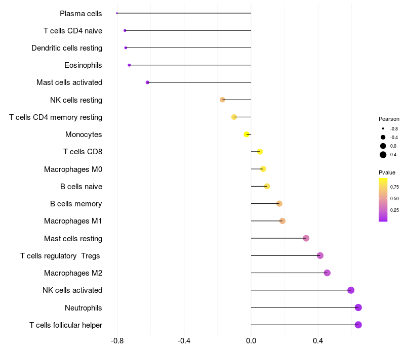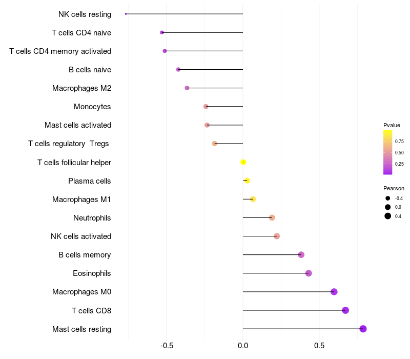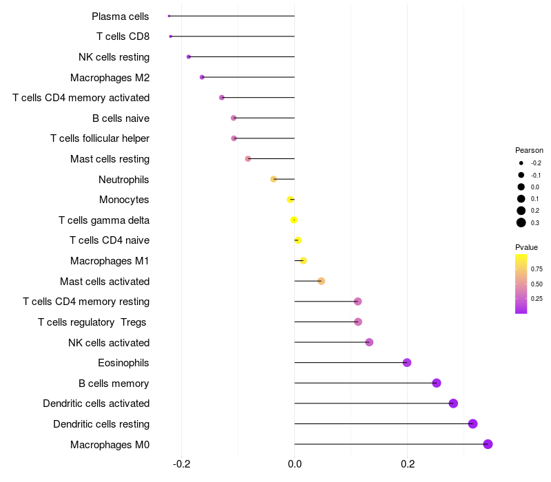 Lollipop of NUP35 expression and immune infiltrating cell level correlation result in HBV+ Liver cirrhosis samples