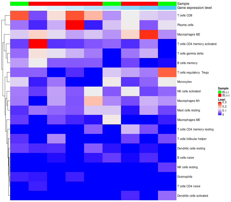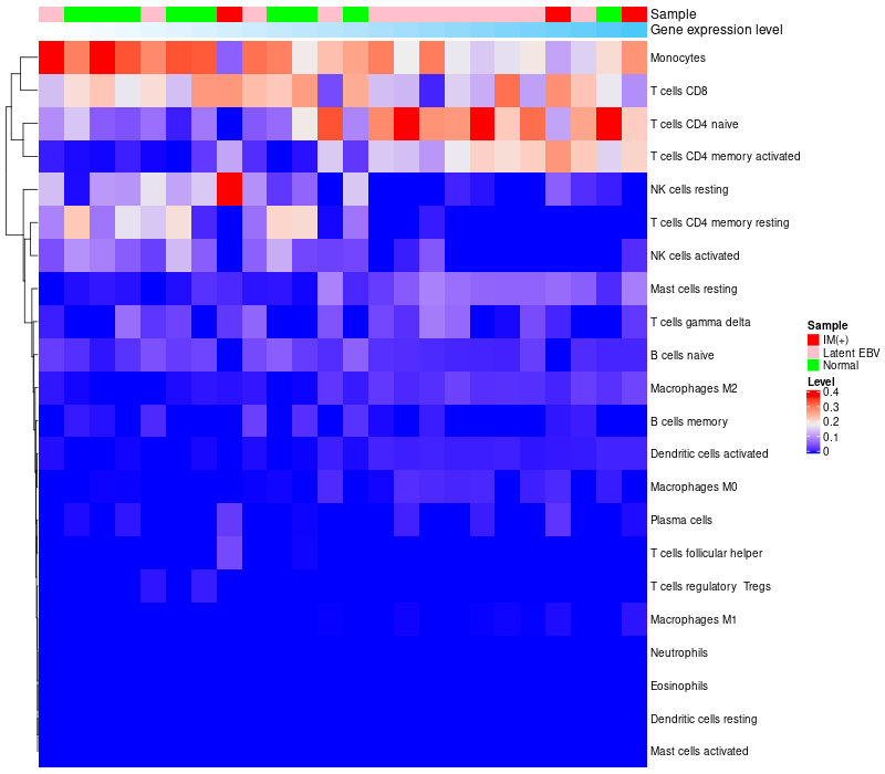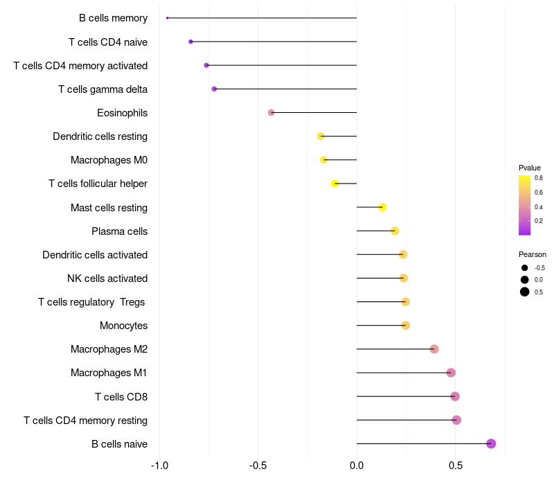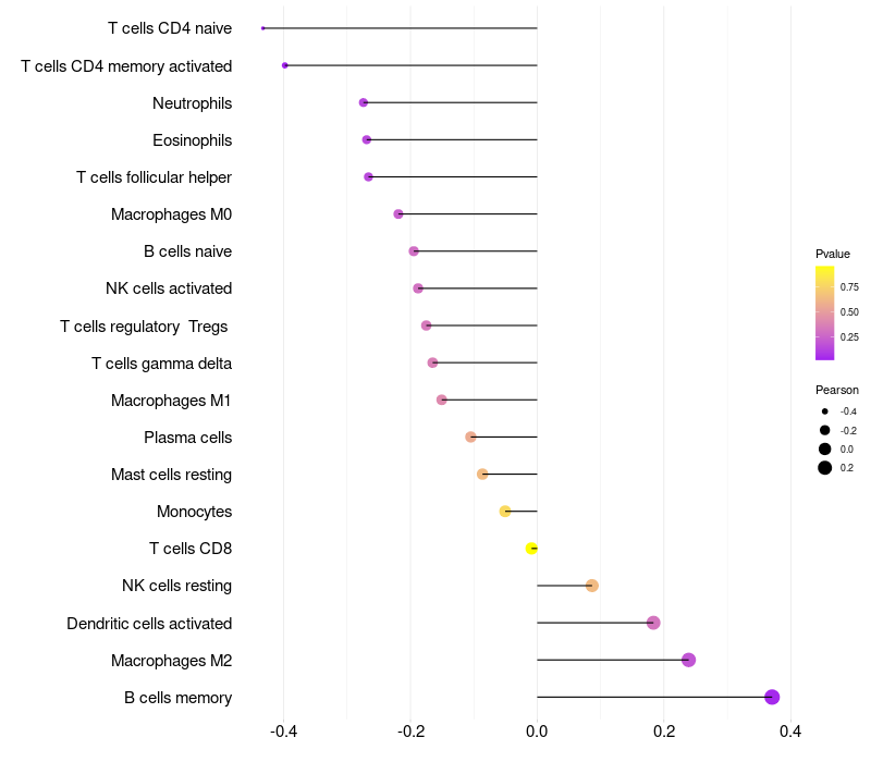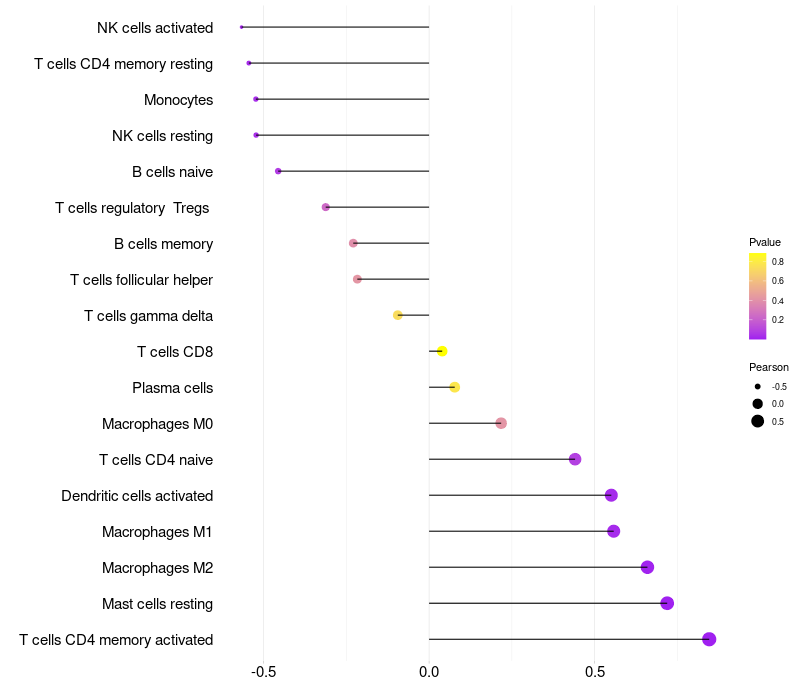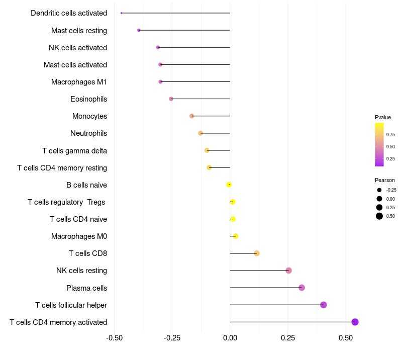 Lollipop of NXF2B expression and immune infiltrating cell level correlation result in EBV+ samples