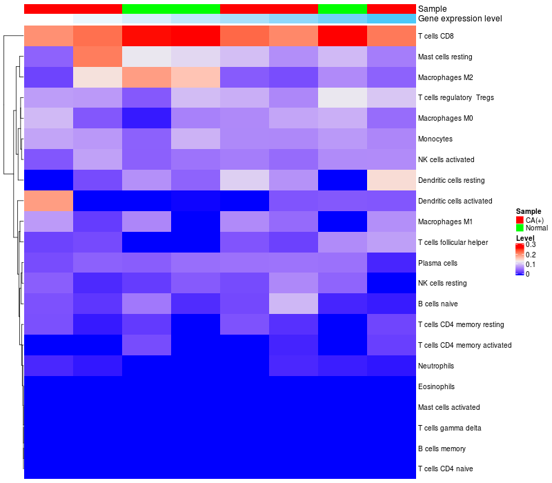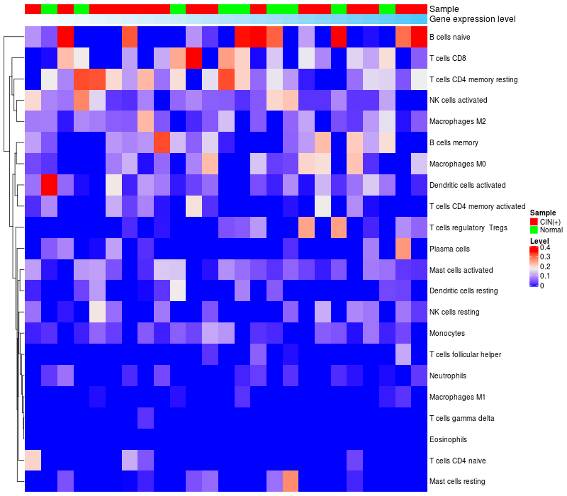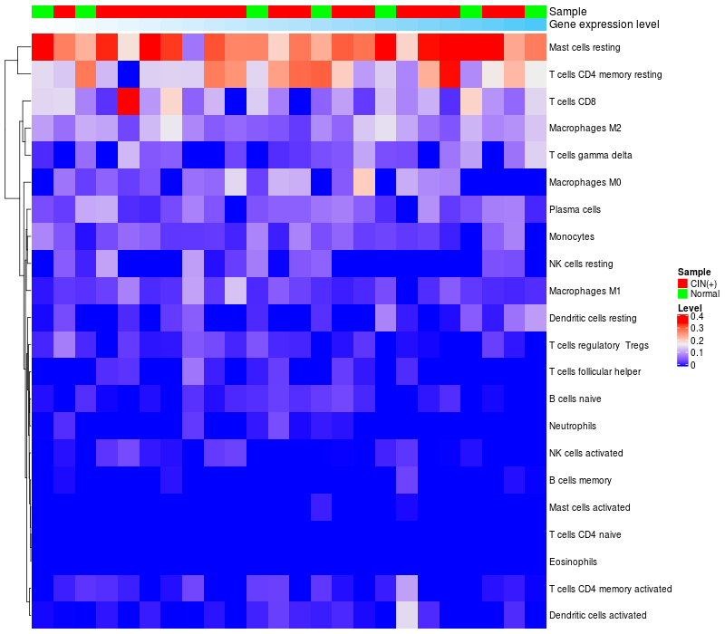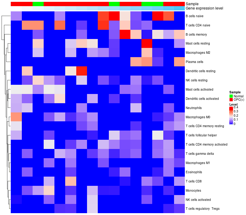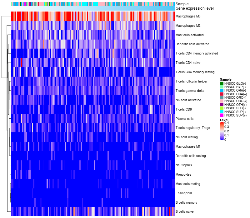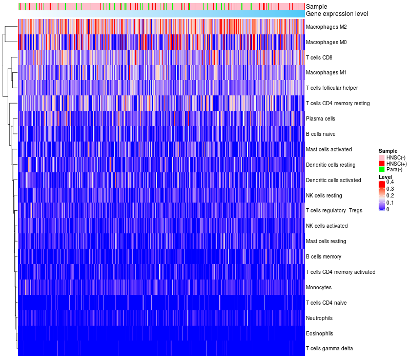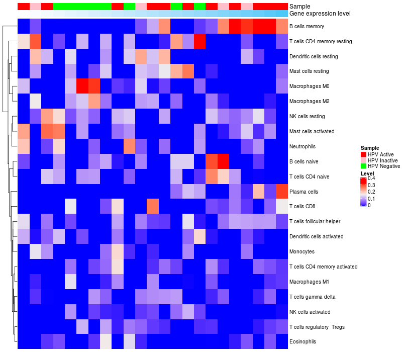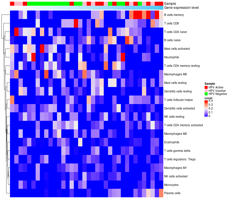 Lollipop of NYX expression and immune infiltrating cell level correlation result in HPV+ samples