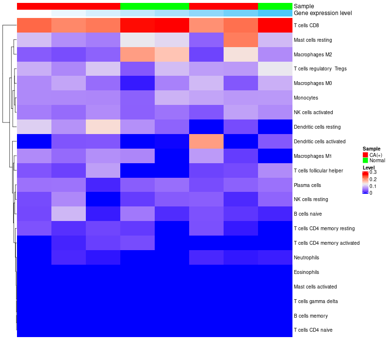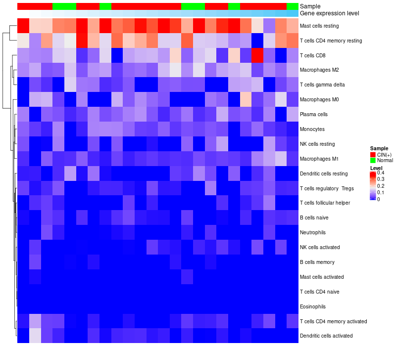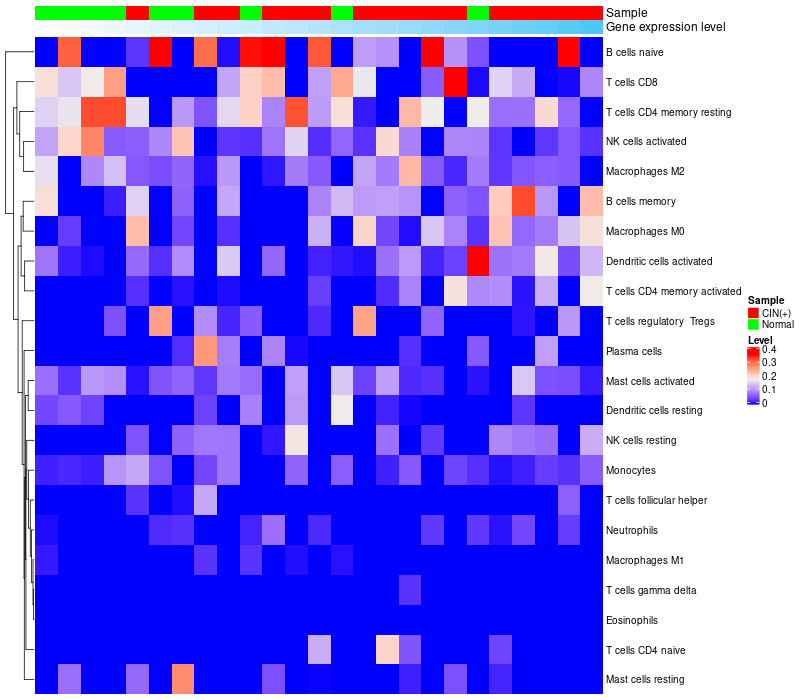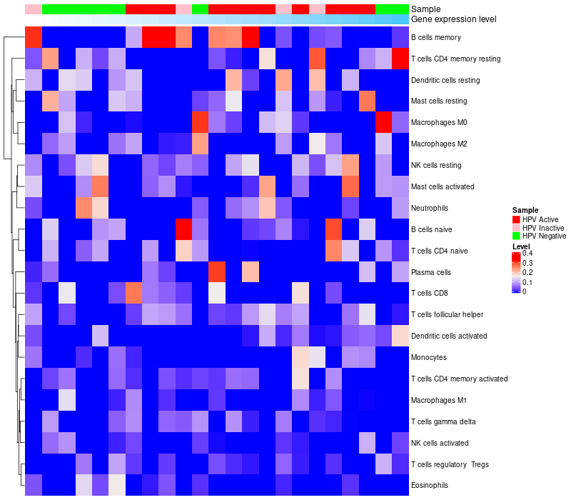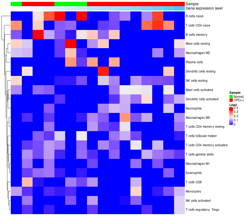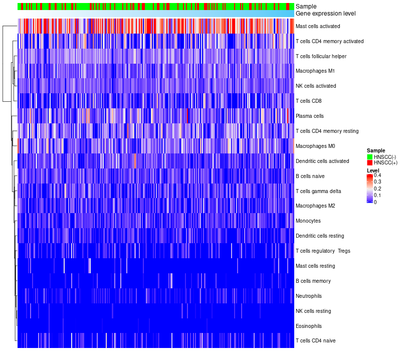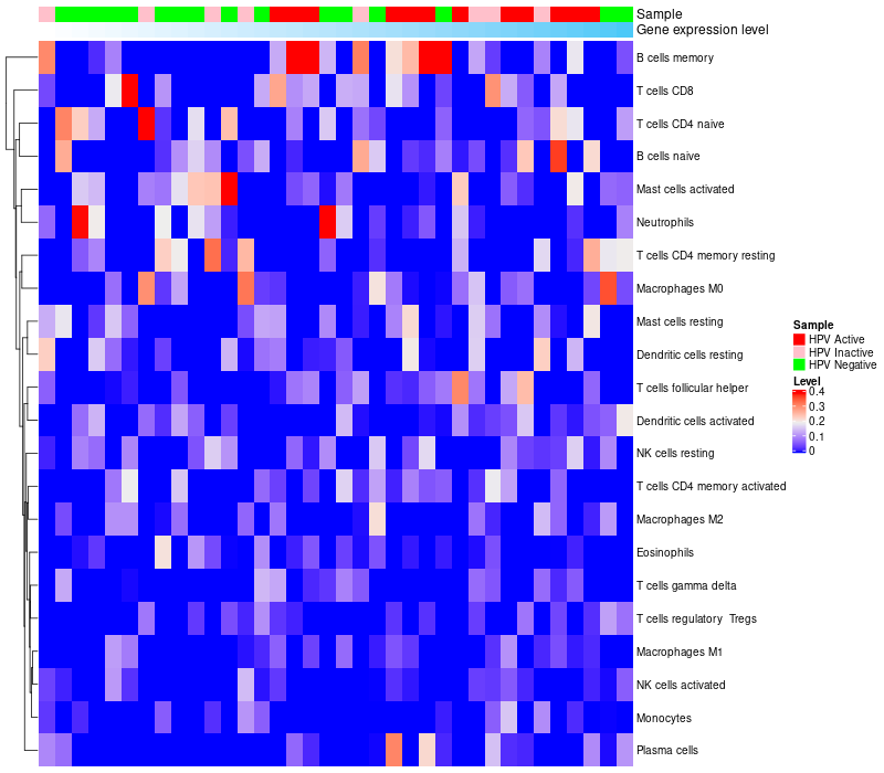 Lollipop of OLFM4 expression and immune infiltrating cell level correlation result in HPV+ samples