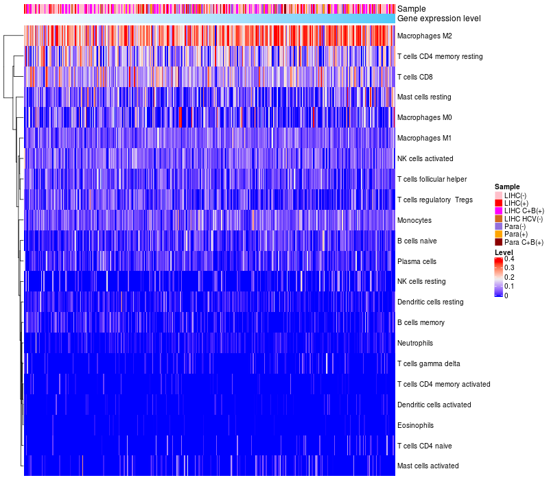 Relationship between gene expression and immune infiltrating cell level