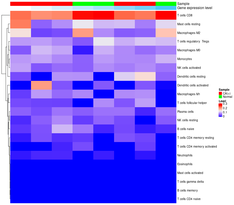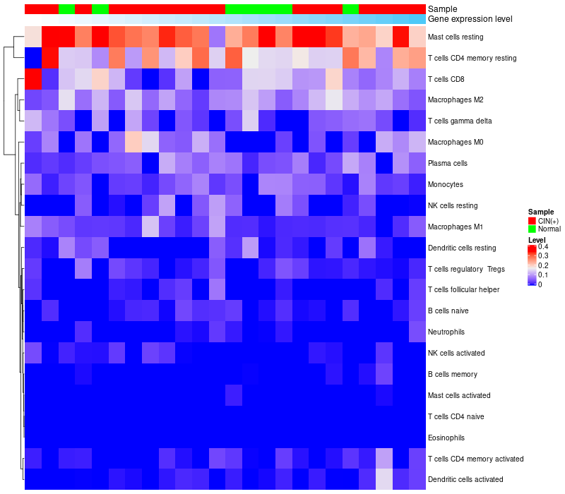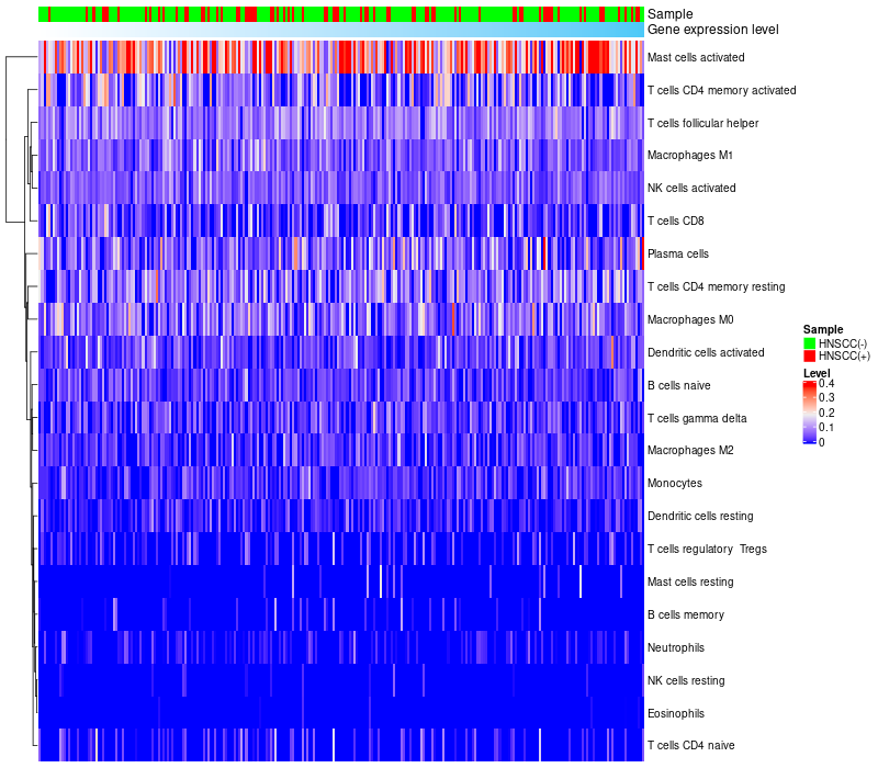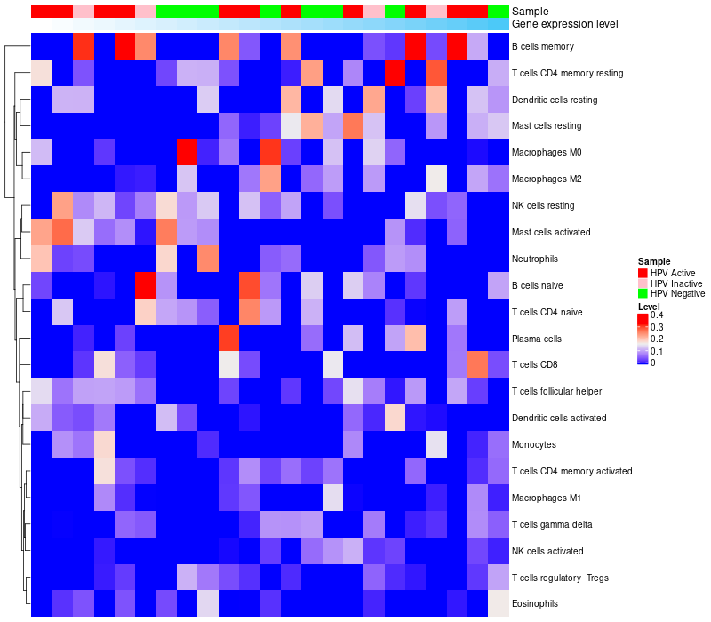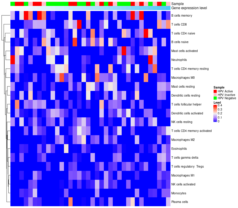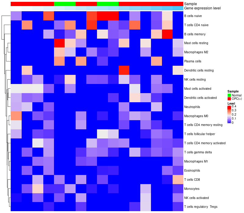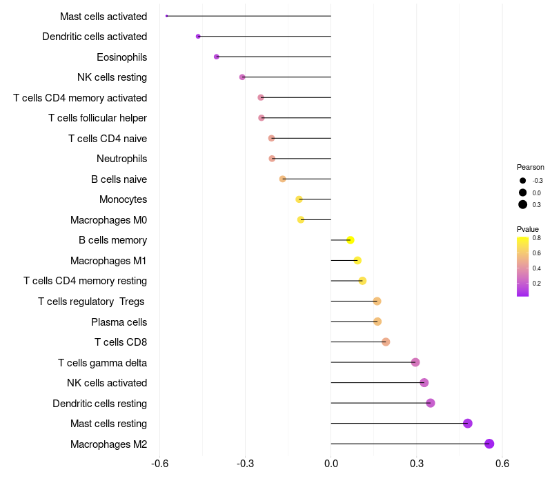 Lollipop of ONECUT1 expression and immune infiltrating cell level correlation result in HPV+ samples