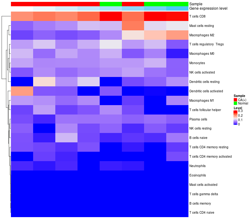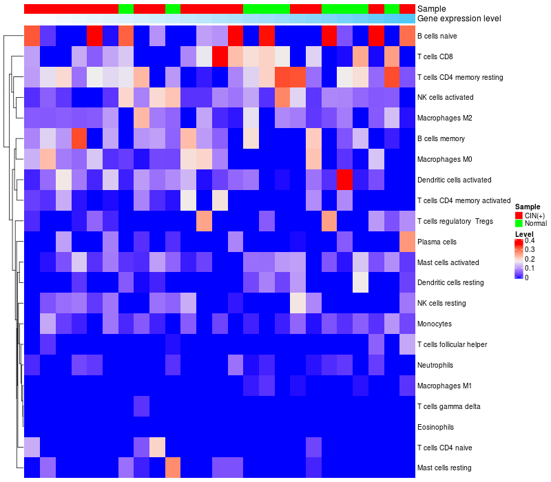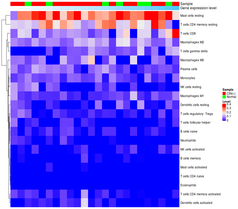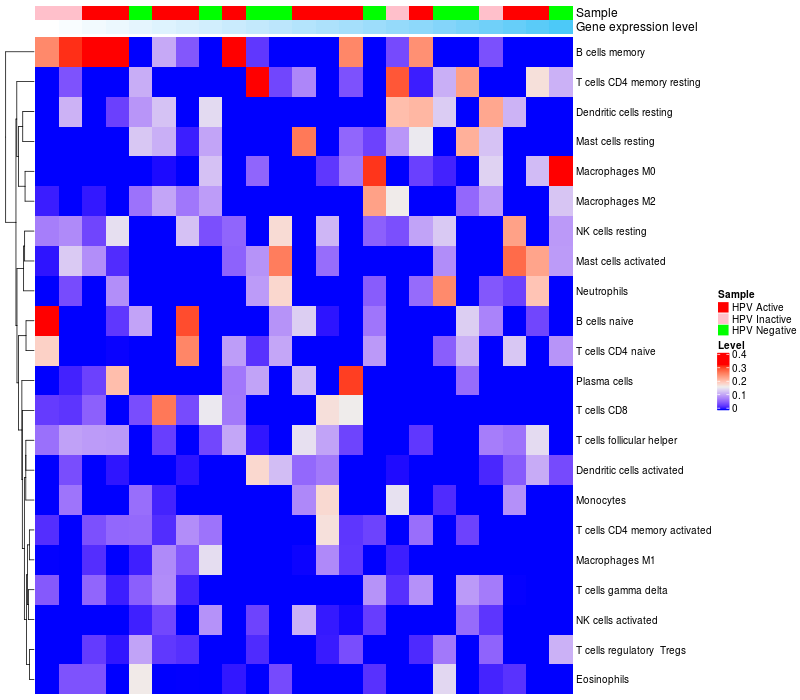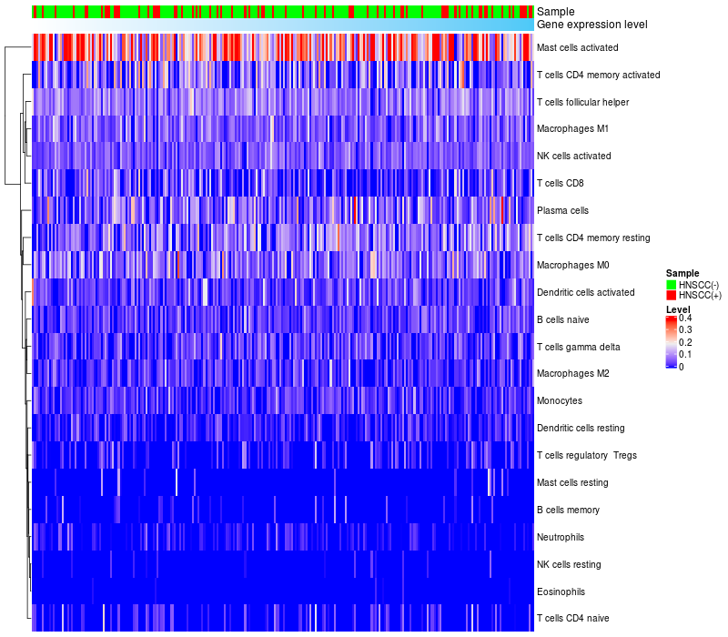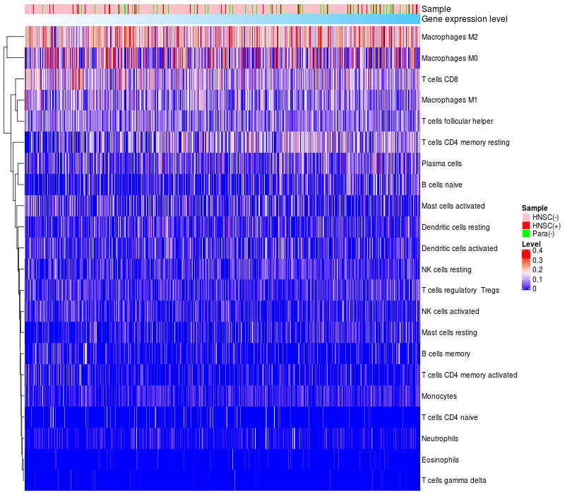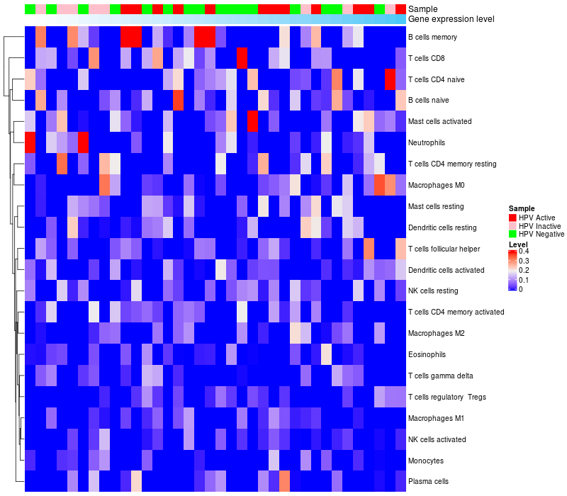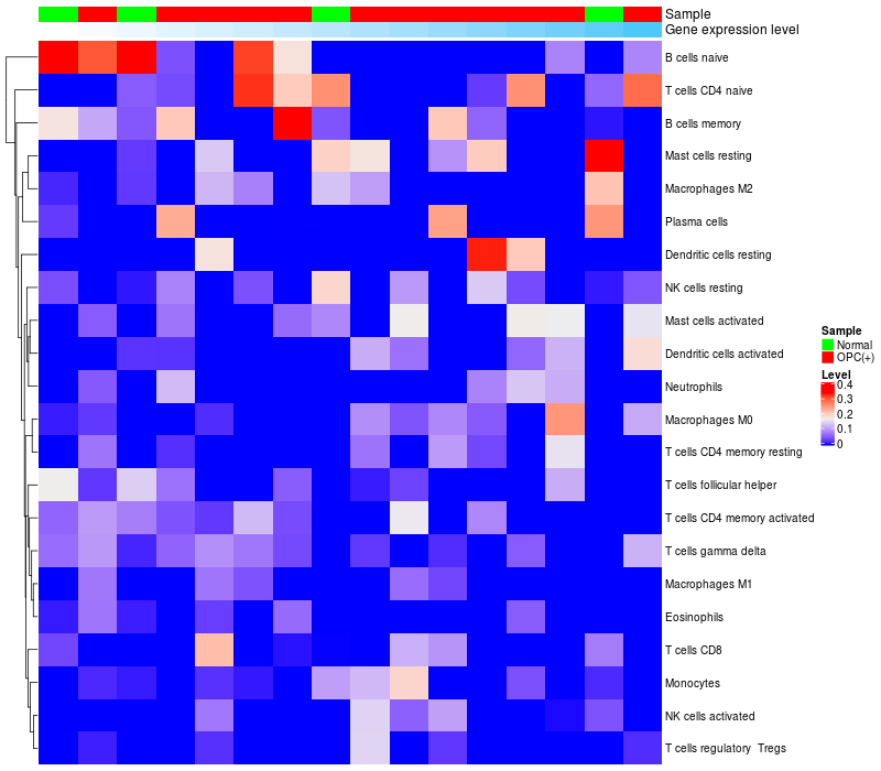 Lollipop of OPHN1 expression and immune infiltrating cell level correlation result in HPV+ samples