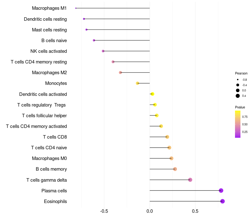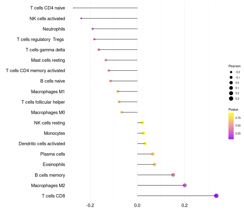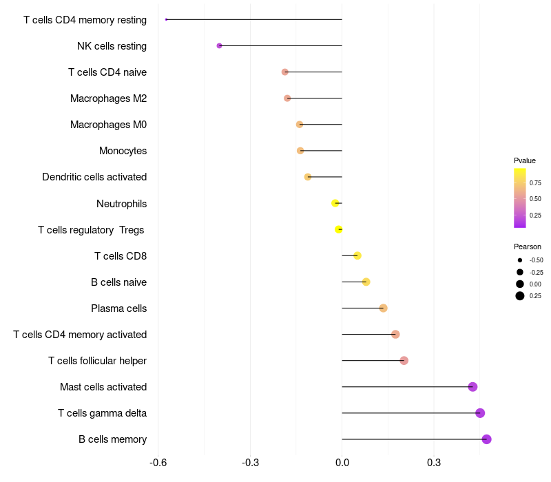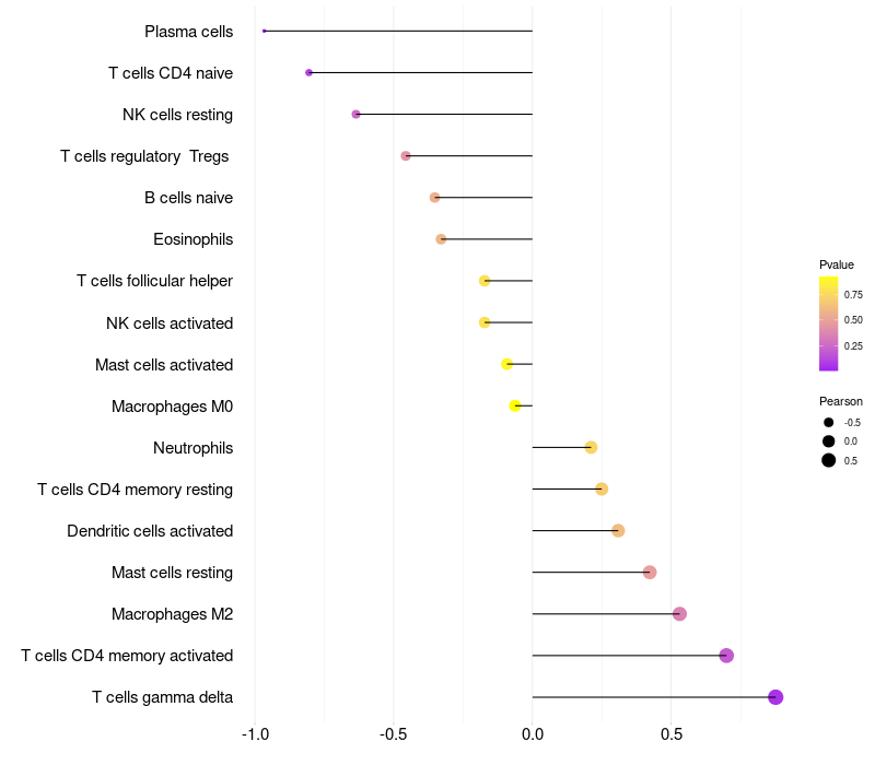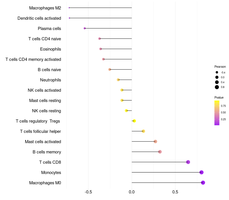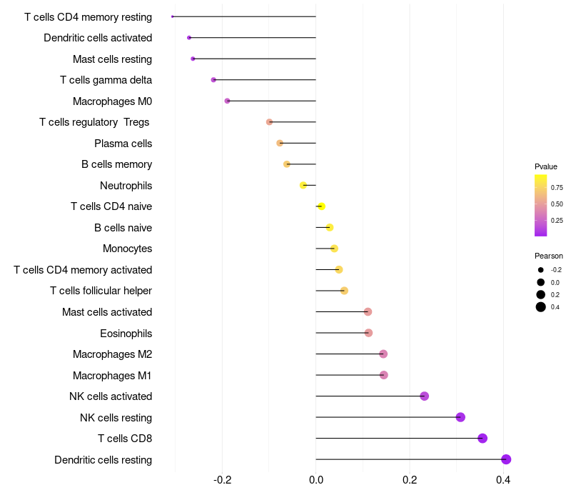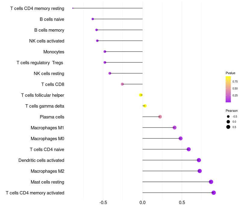 Lollipop of OPN5 expression and immune infiltrating cell level correlation result in EBV+ samples