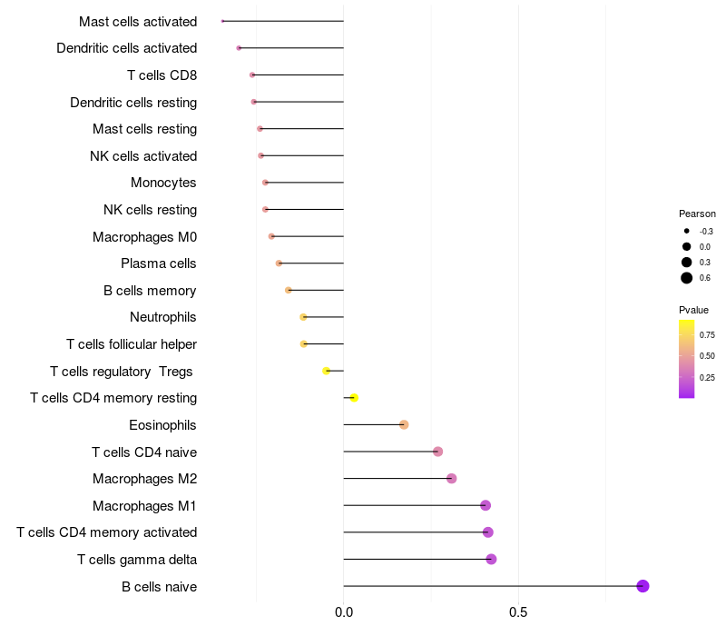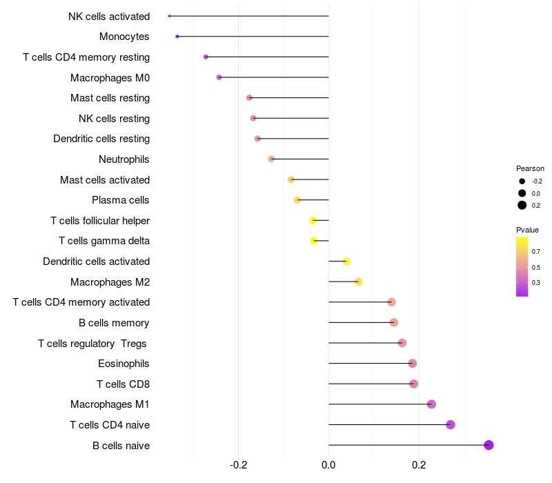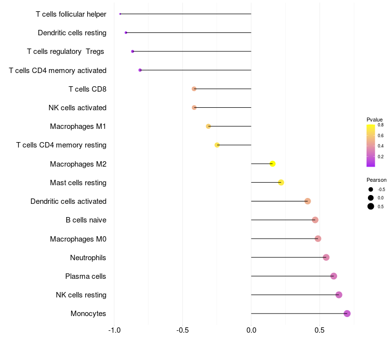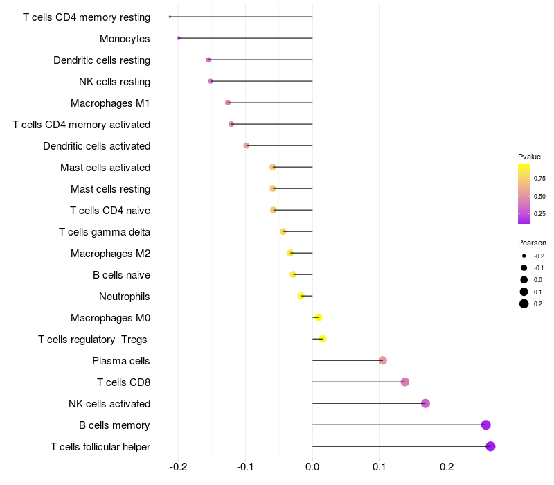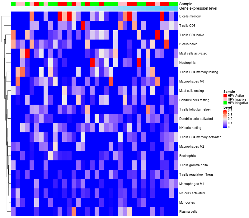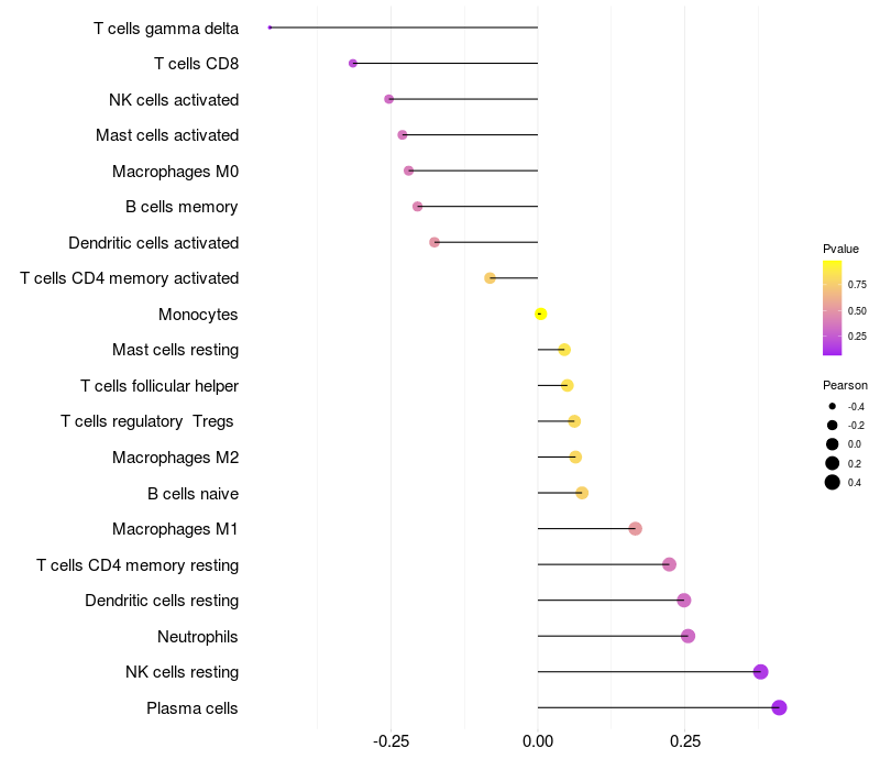 HeatMap of cell type fractions in all samples Lollipop of OR13F1 expression and immune infiltrating cell level correlation result in HPV+ samples