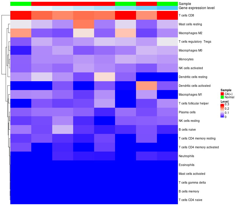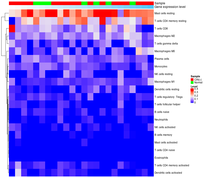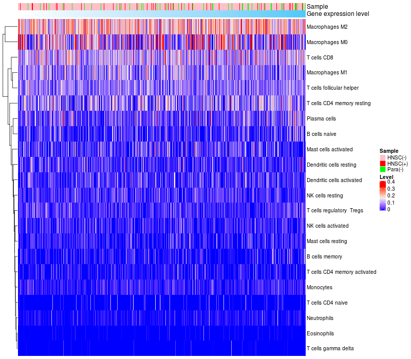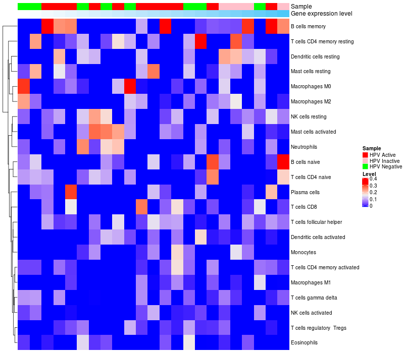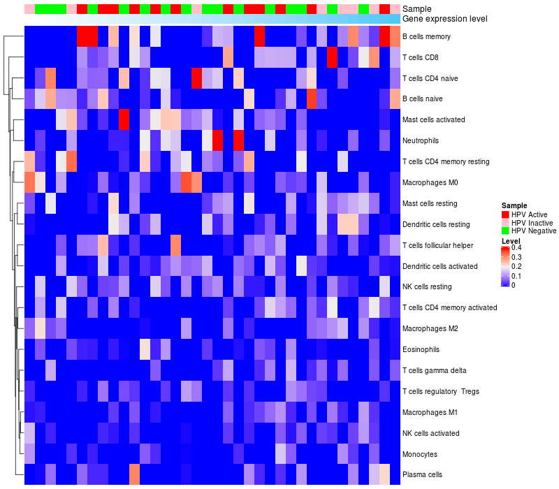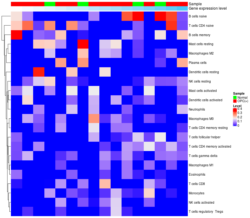 Lollipop of OR1M1 expression and immune infiltrating cell level correlation result in HPV+ samples