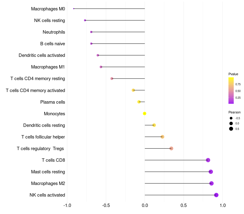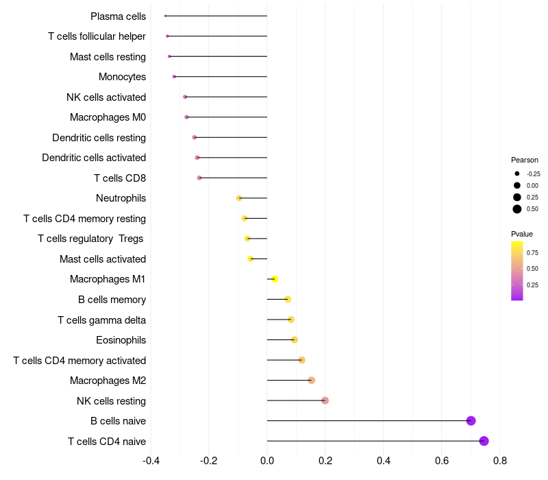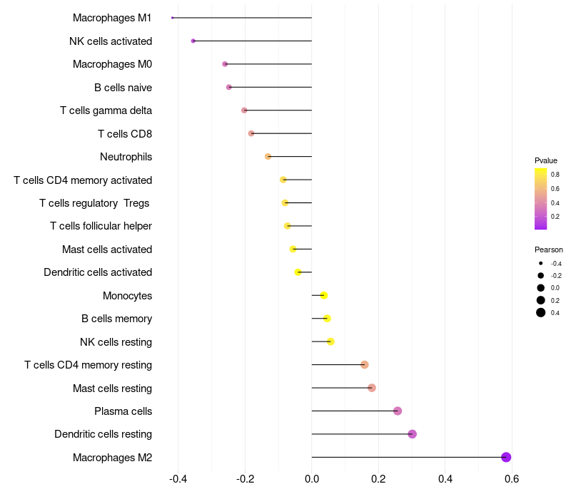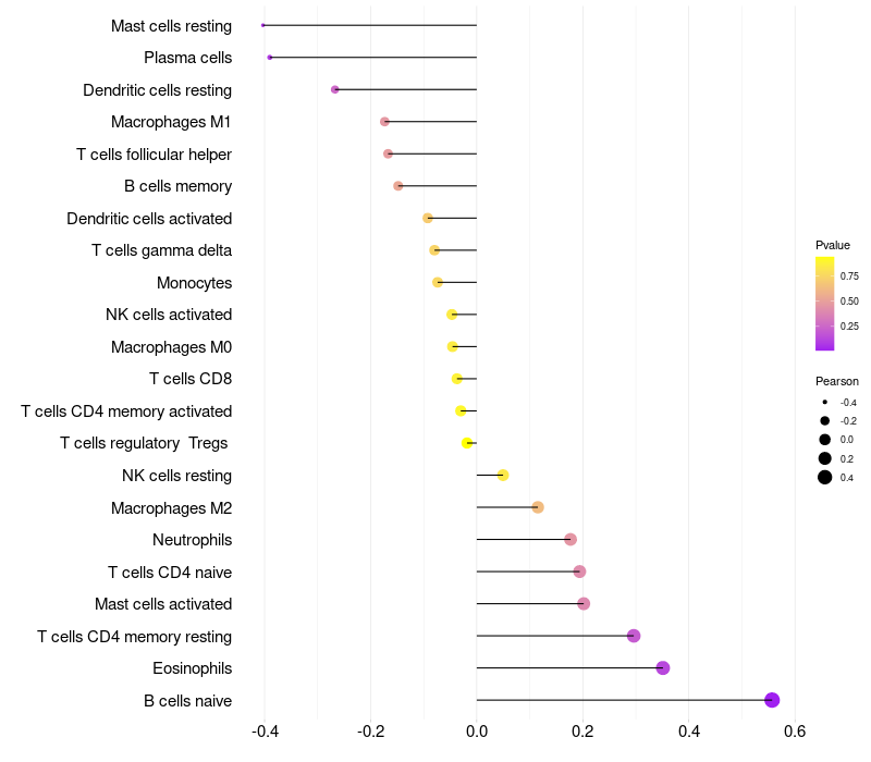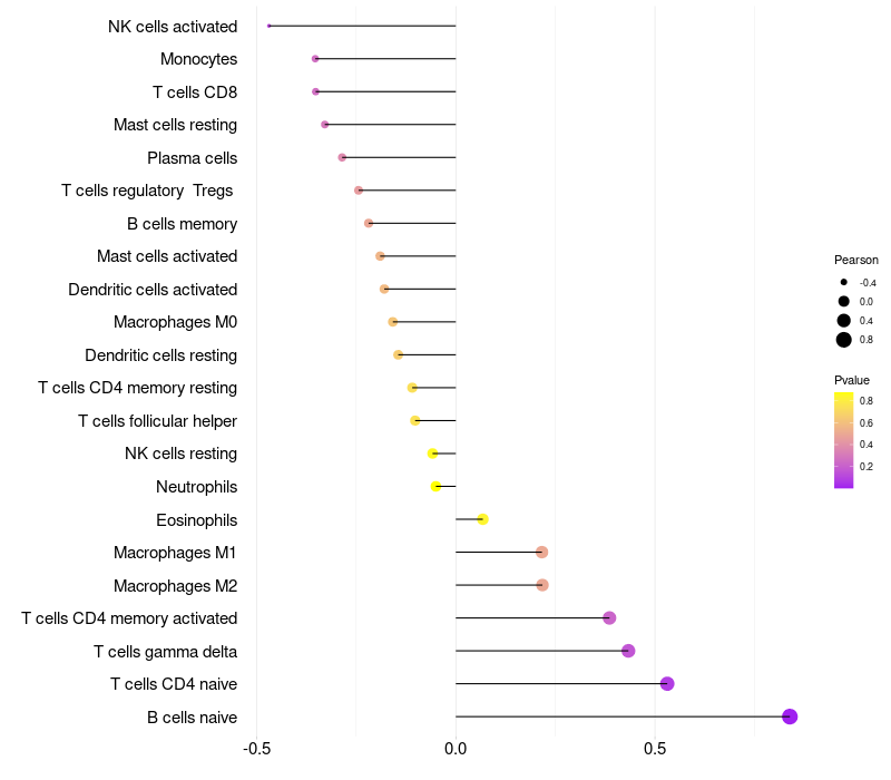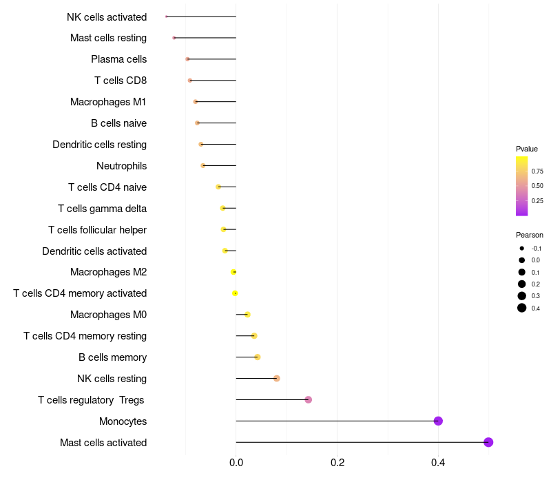 HeatMap of cell type fractions in all samples Lollipop of OR5H15 expression and immune infiltrating cell level correlation result in HPV+ samples