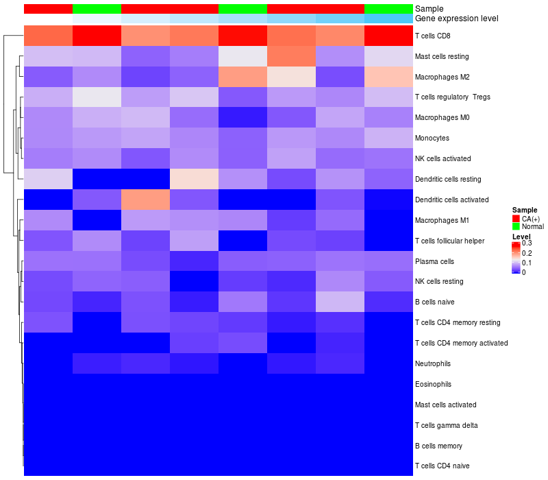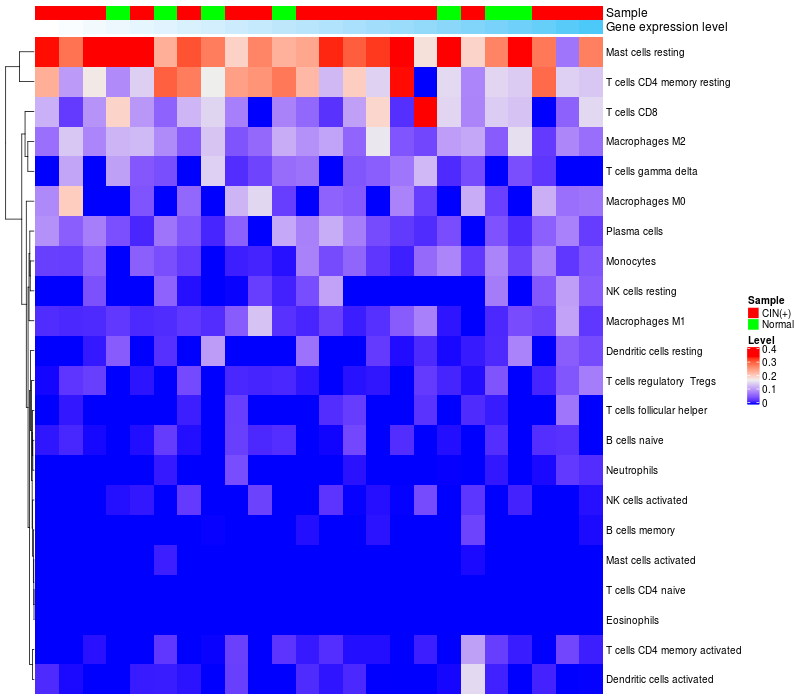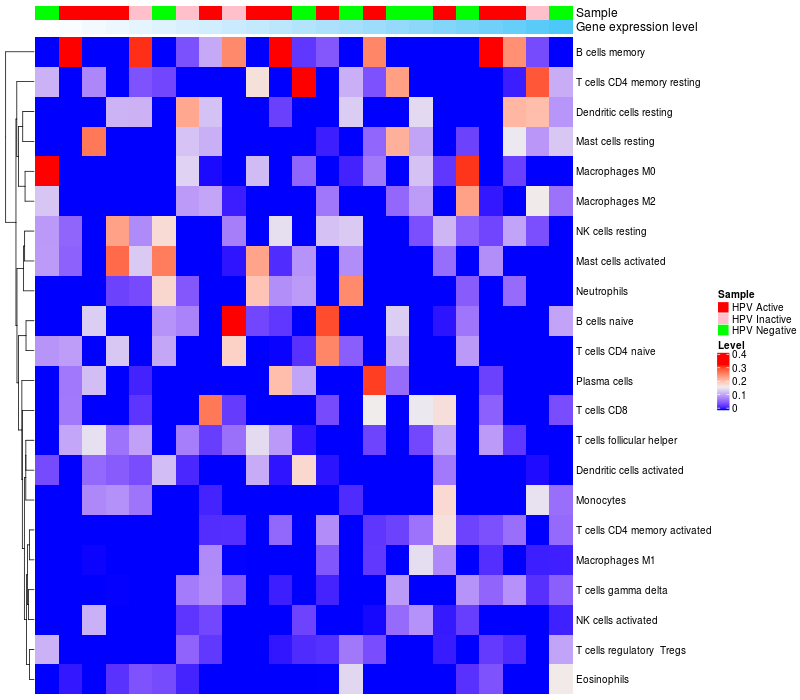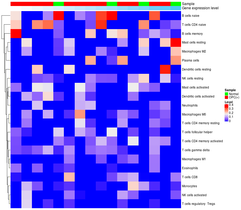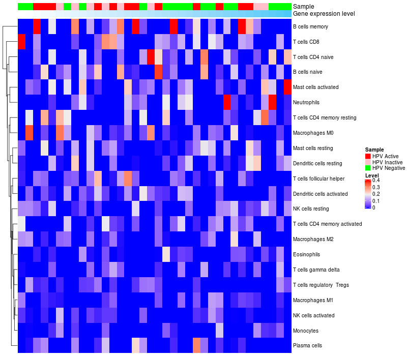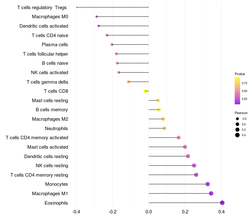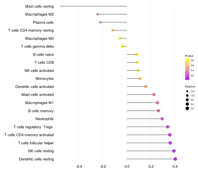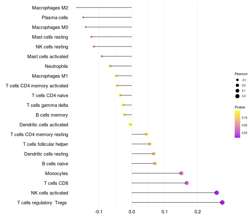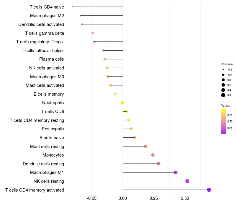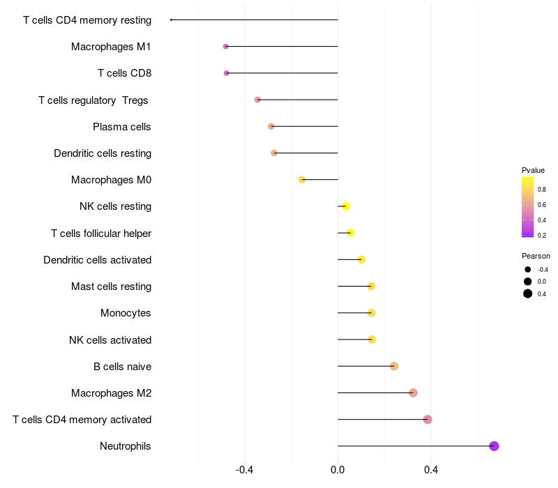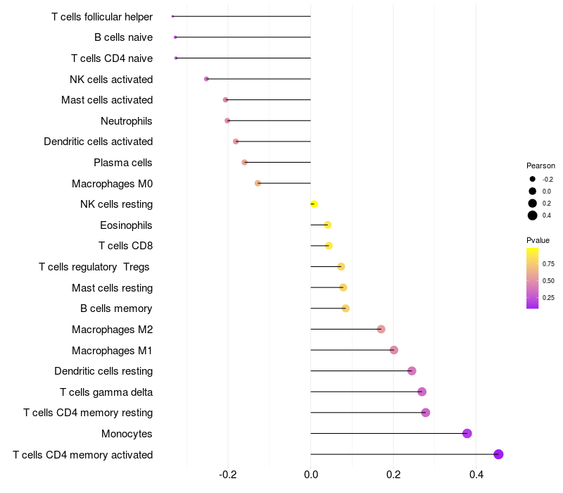 Lollipop of OR5I1 expression and immune infiltrating cell level correlation result in HPV+ samples