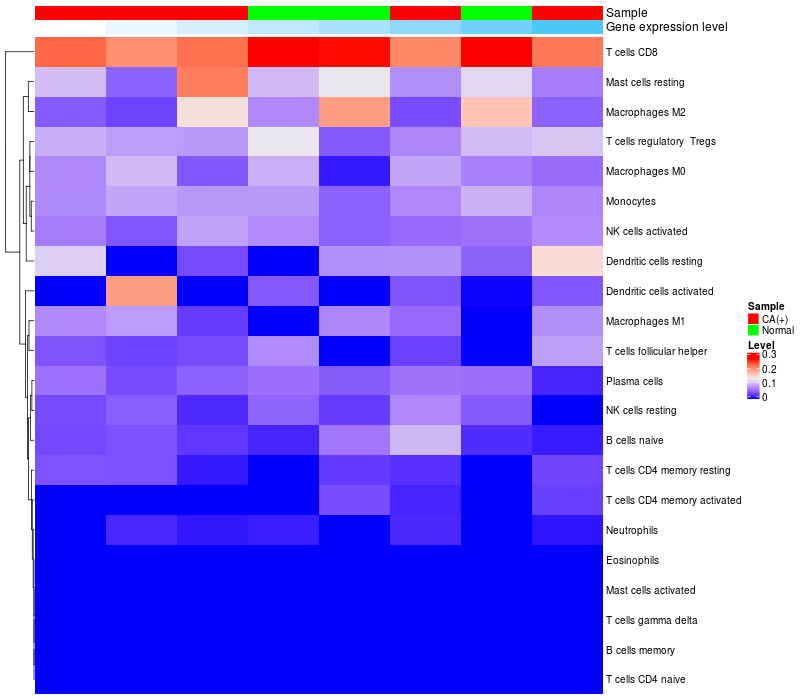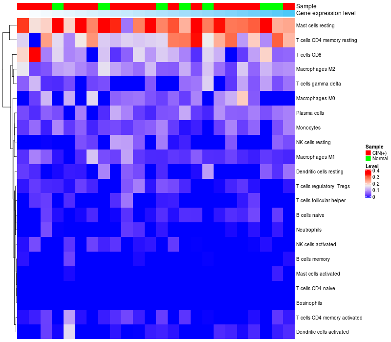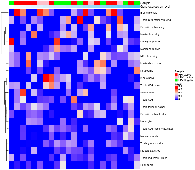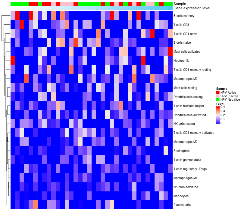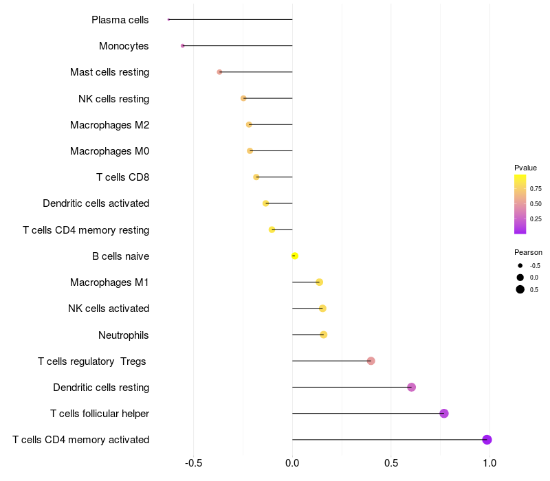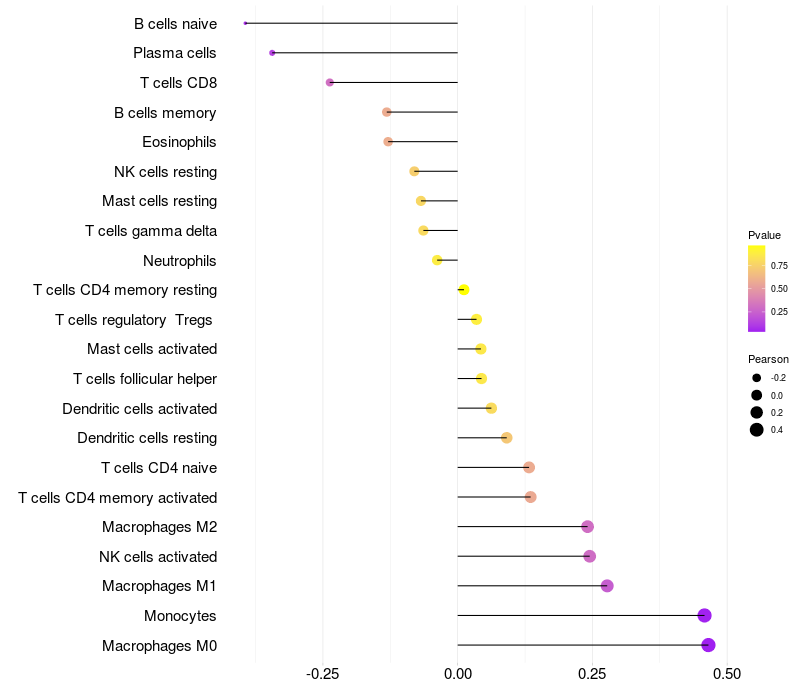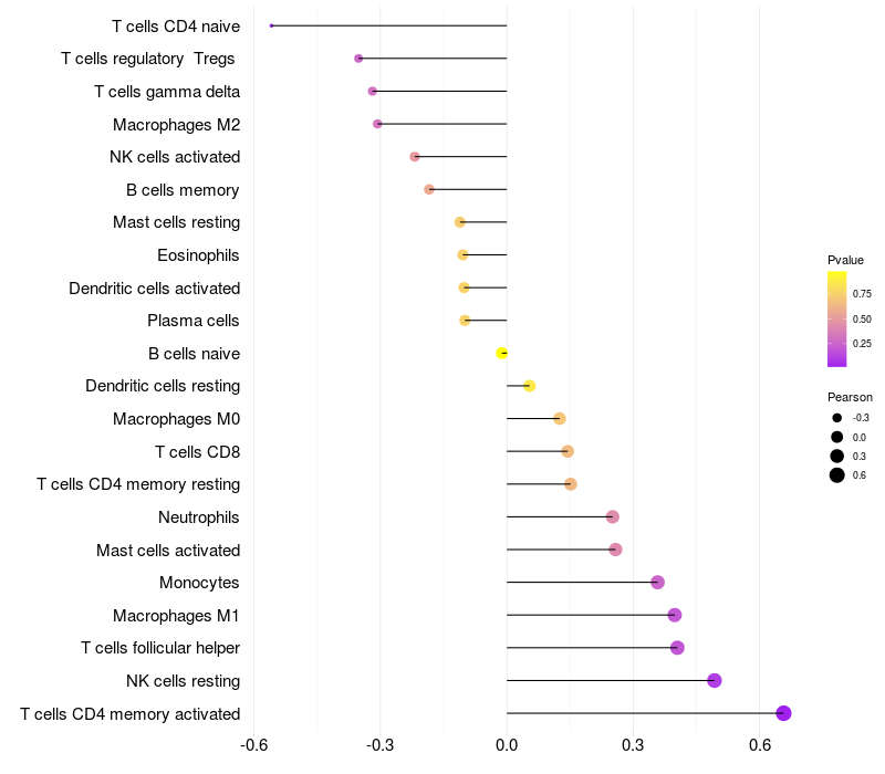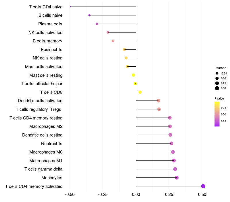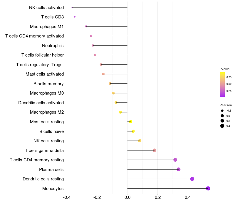 Lollipop of OR8A1 expression and immune infiltrating cell level correlation result in HPV+ samples