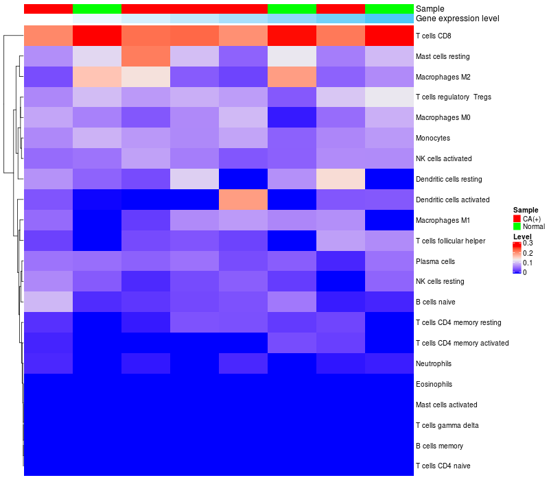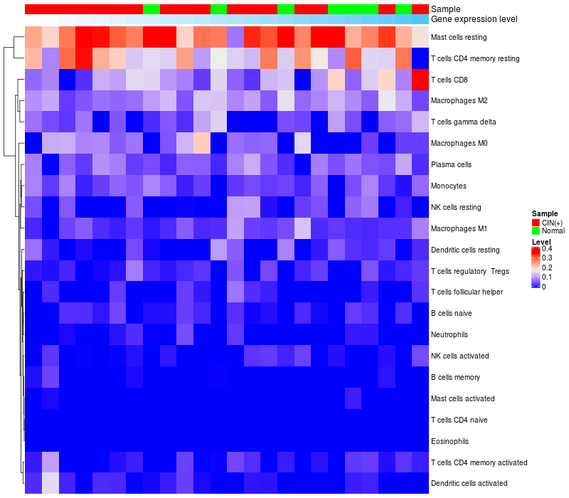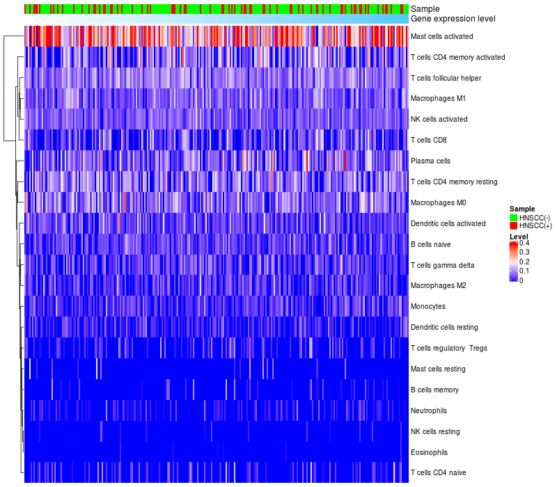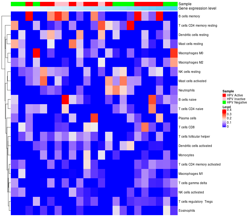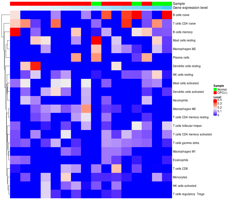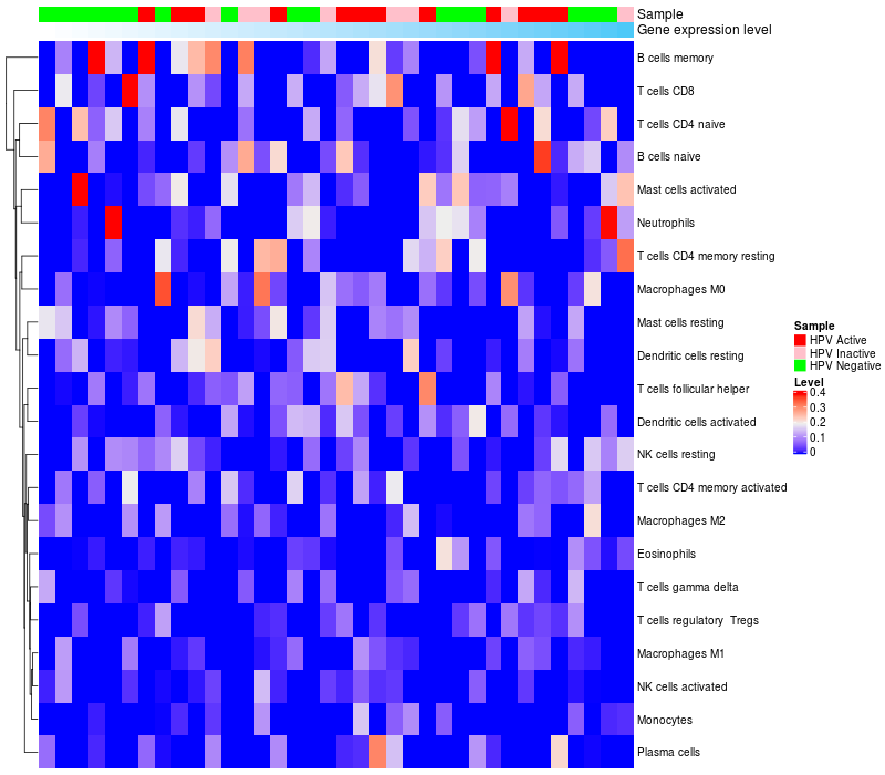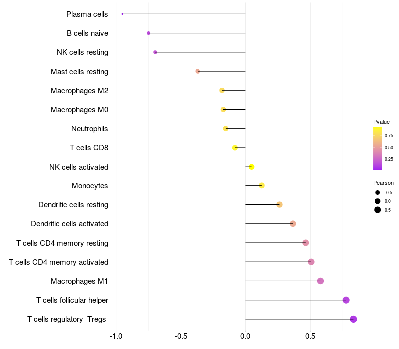 Lollipop of OR8B12 expression and immune infiltrating cell level correlation result in HPV+ samples