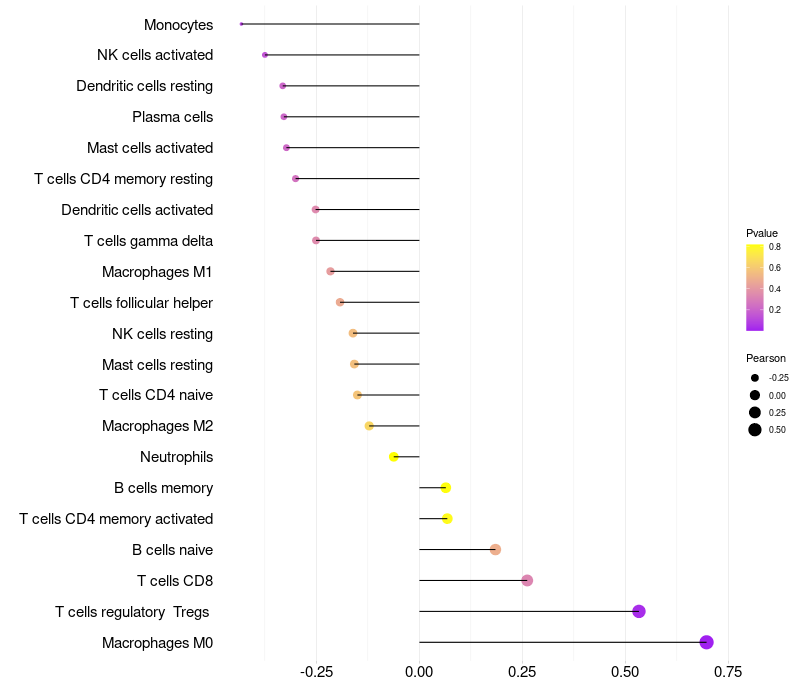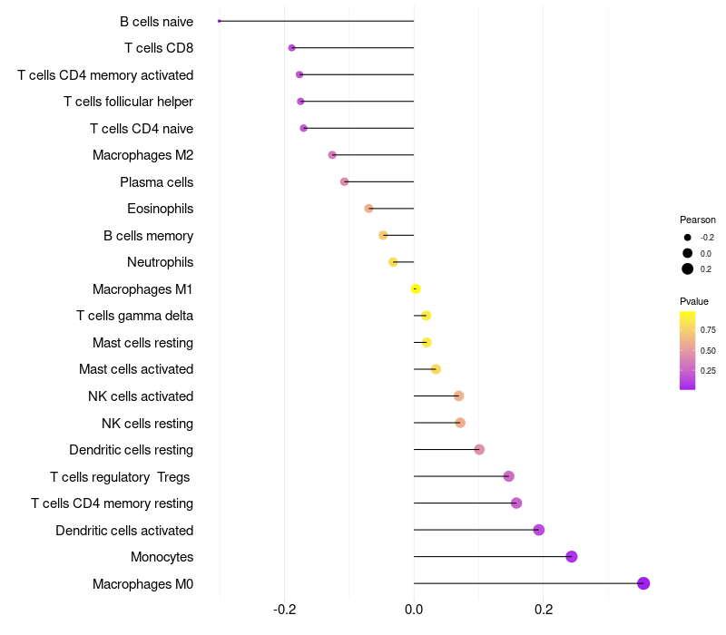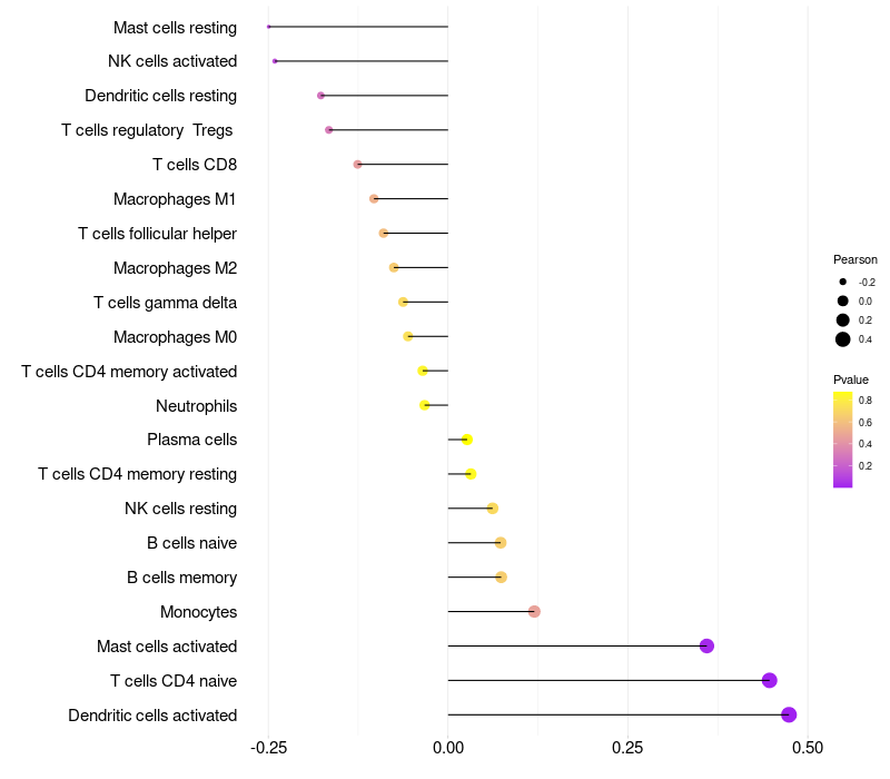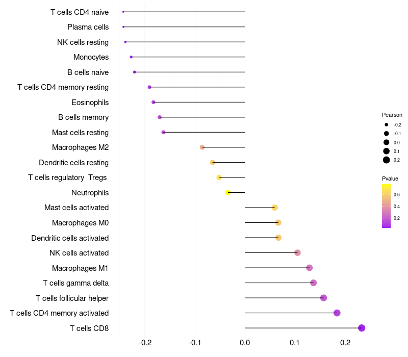 HeatMap of cell type fractions in all samples Lollipop of OXTR expression and immune infiltrating cell level correlation result in HPV+ samples