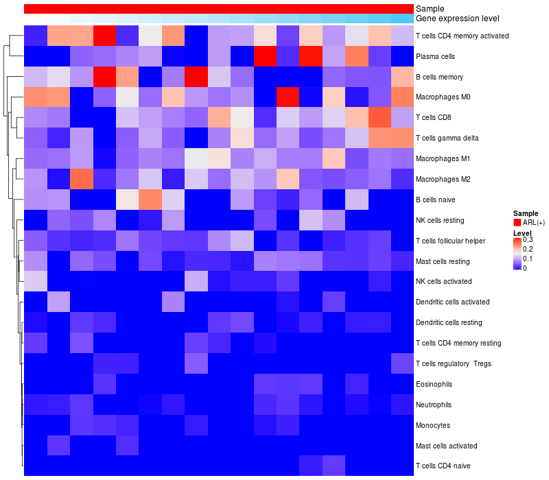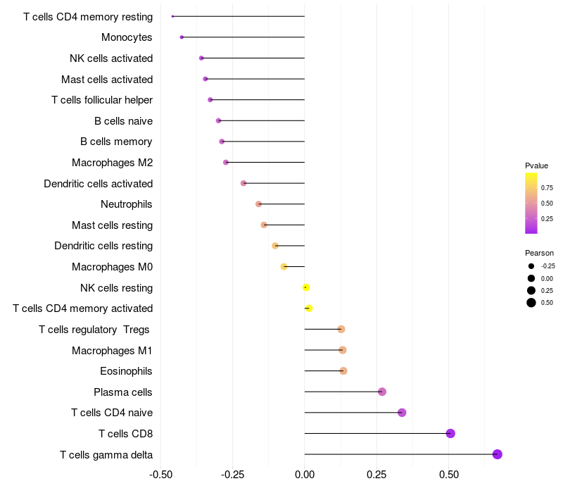 Relationship between gene expression and immune infiltrating cell level