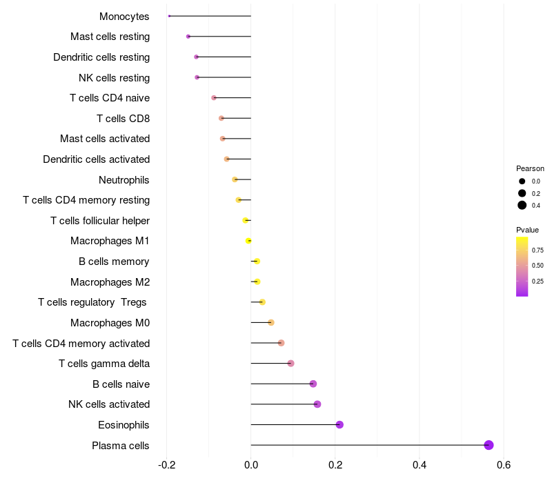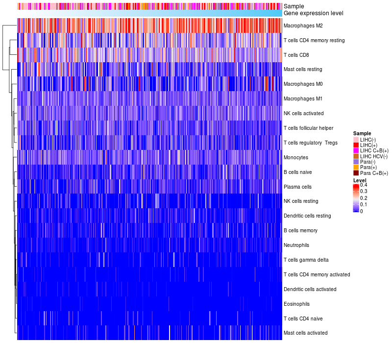 Relationship between gene expression and immune infiltrating cell level
