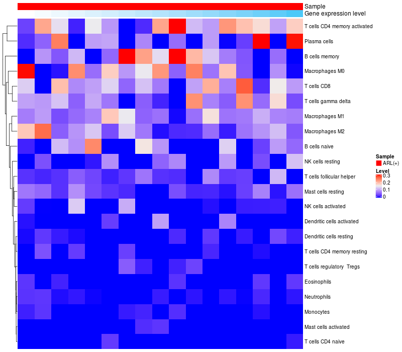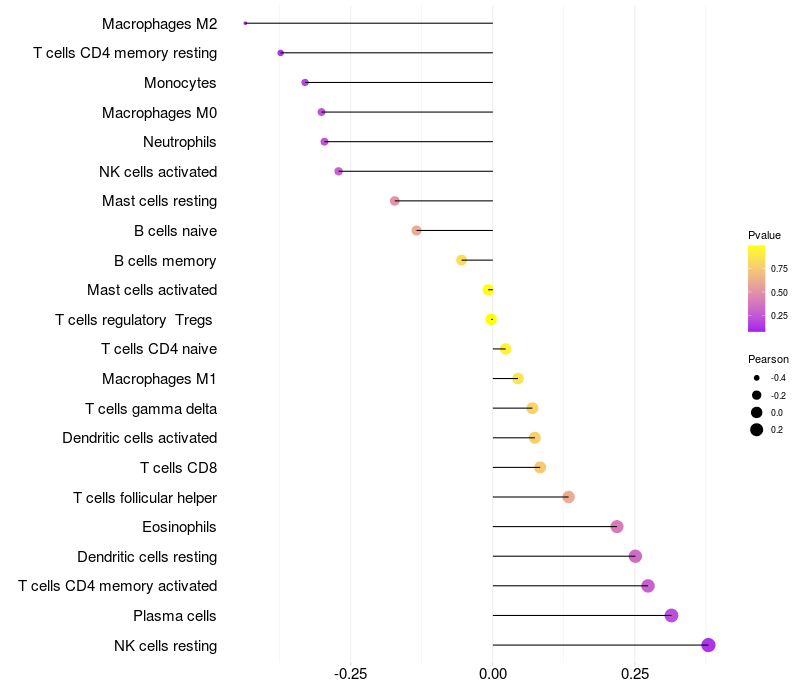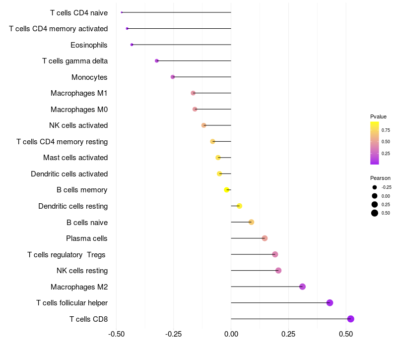 Relationship between gene expression and immune infiltrating cell level