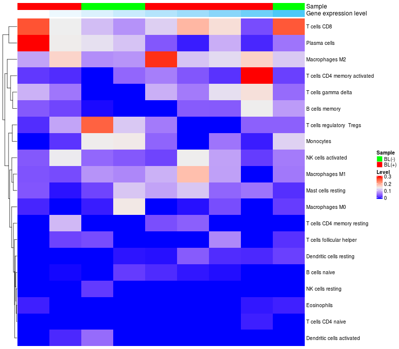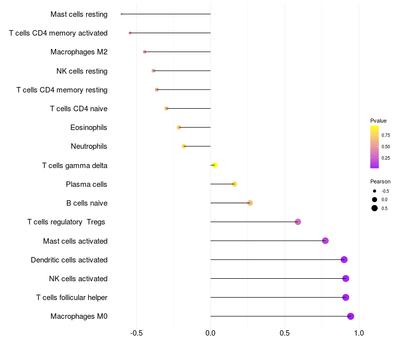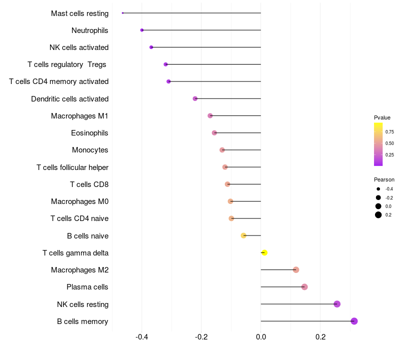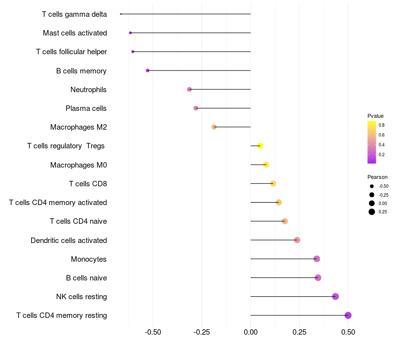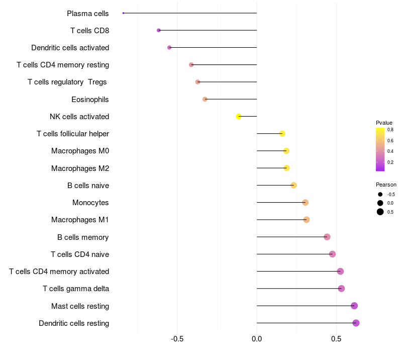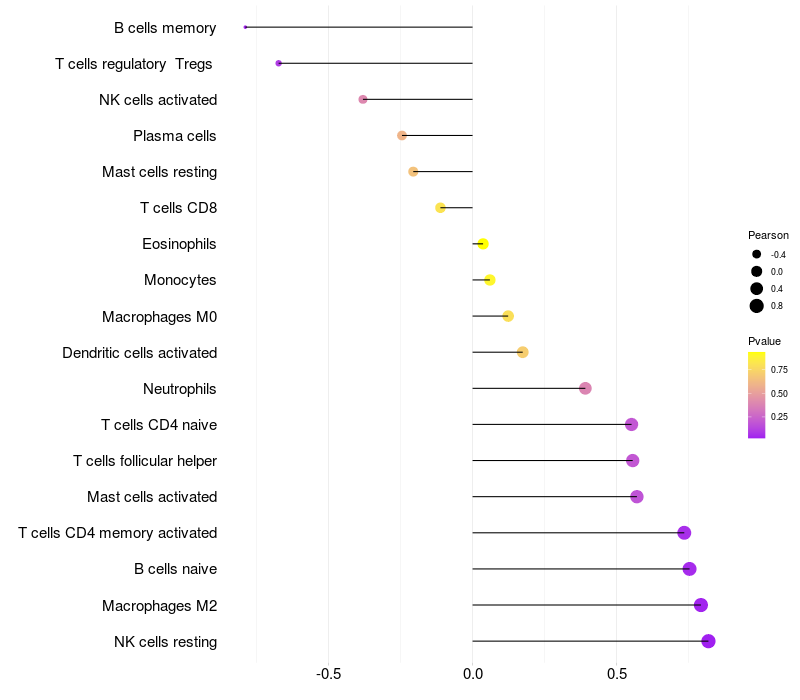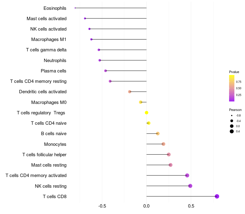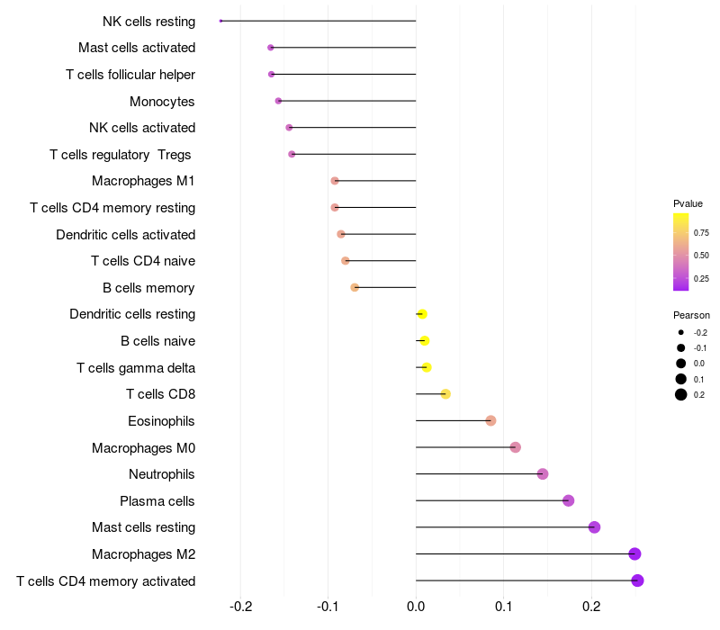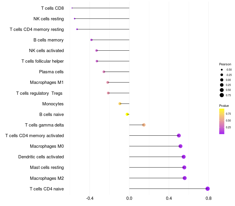Lollipop of PAK2 expression and immune infiltrating cell level correlation result in EBV+ samples