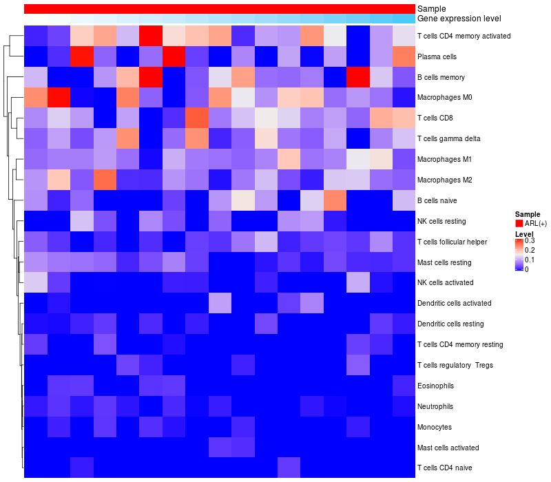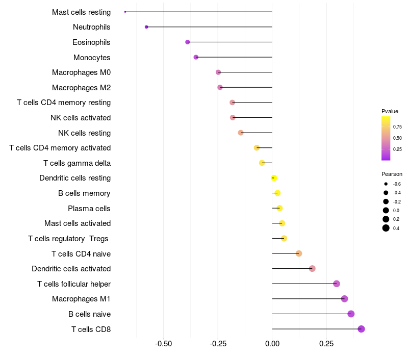 Relationship between gene expression and immune infiltrating cell level