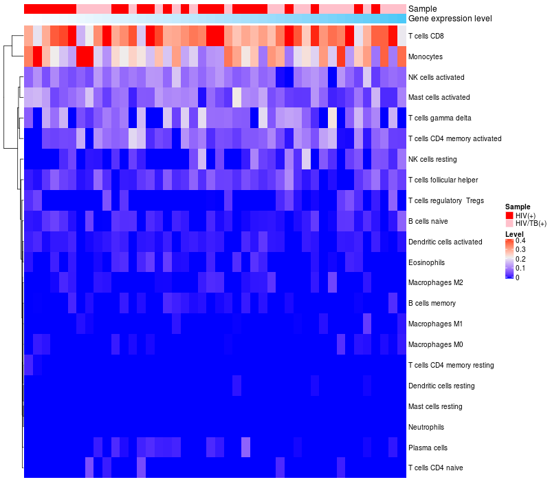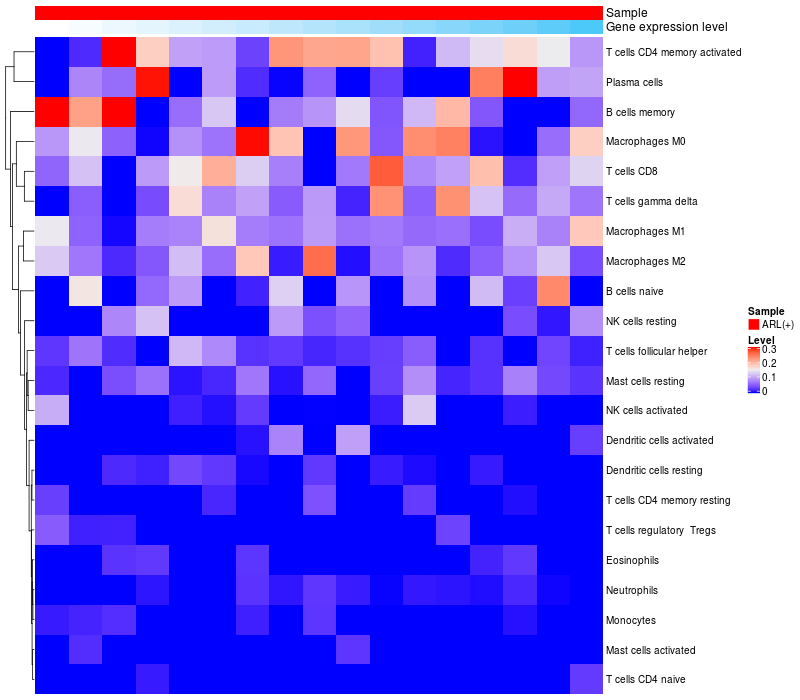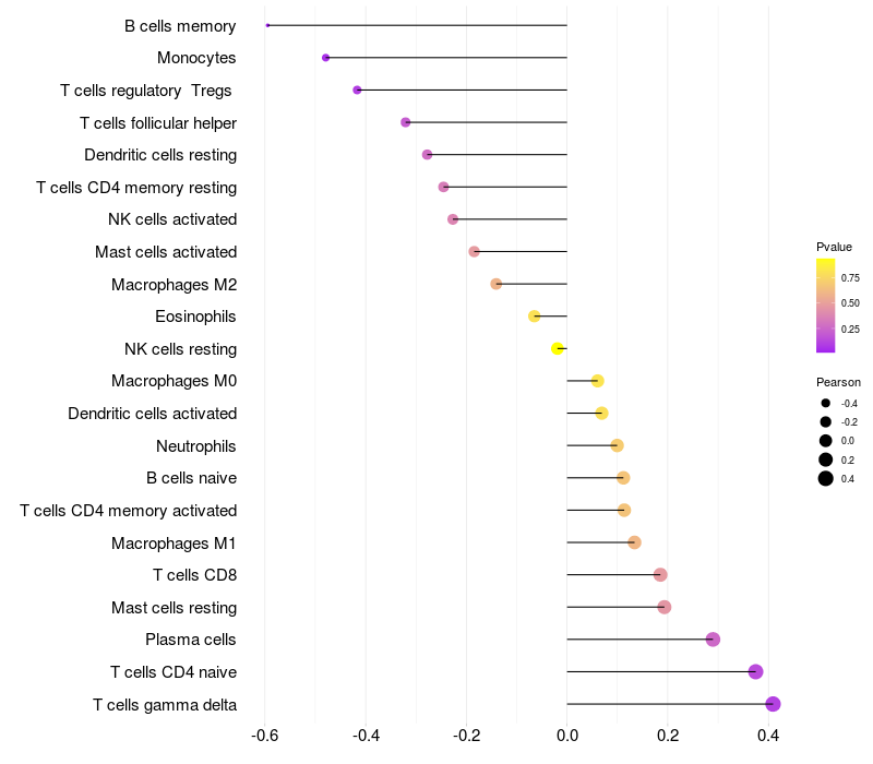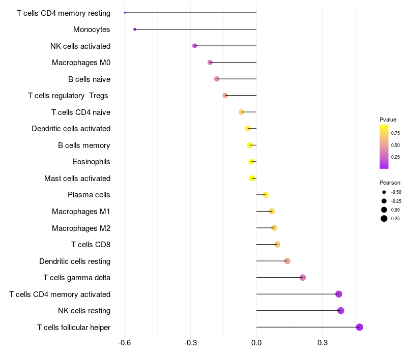 Relationship between gene expression and immune infiltrating cell level