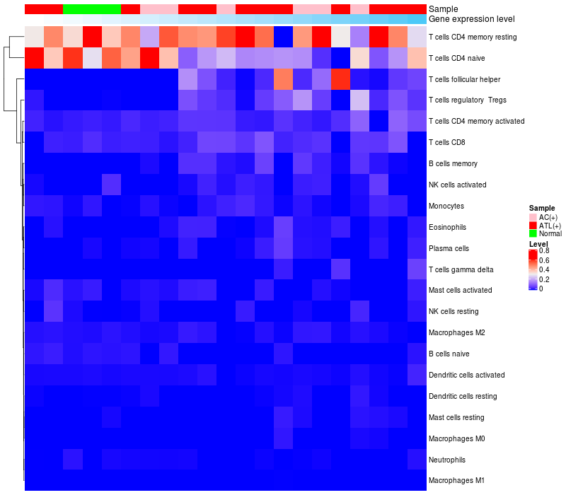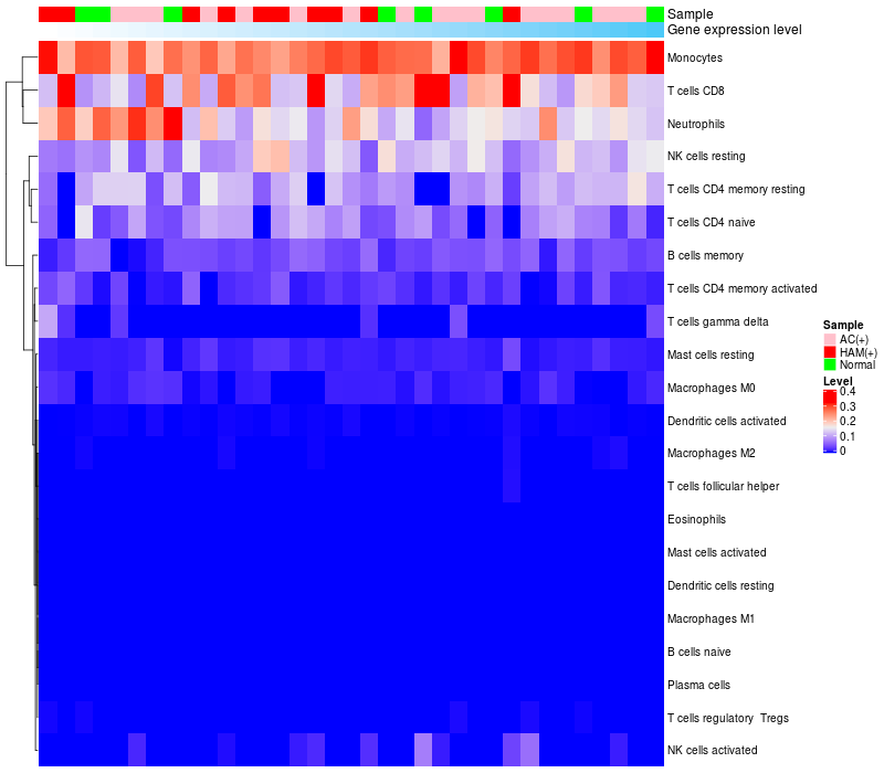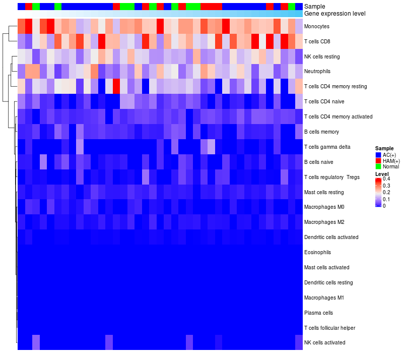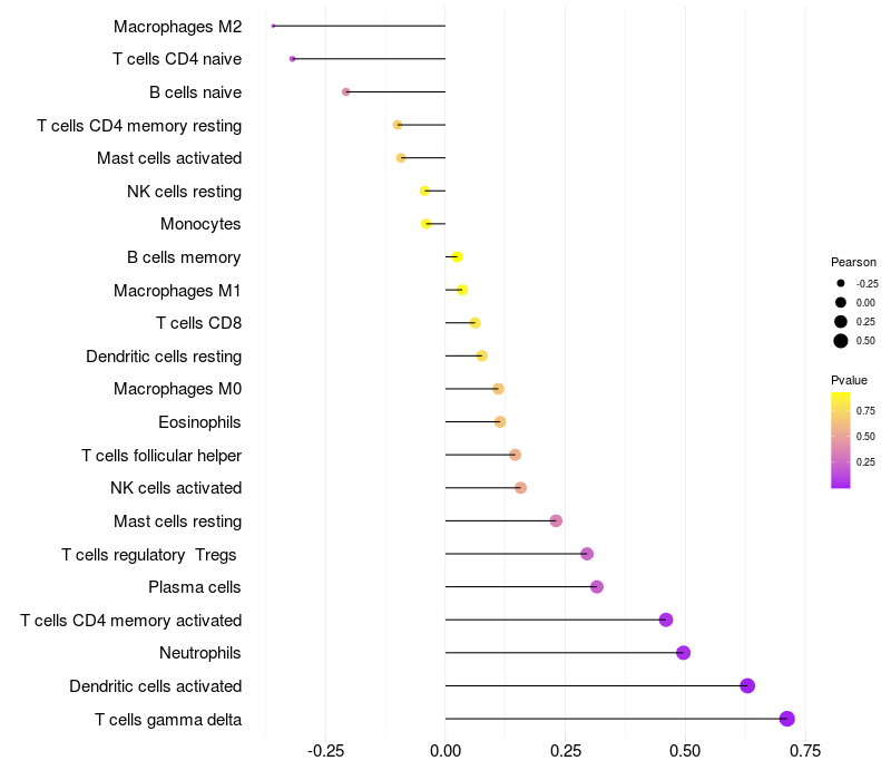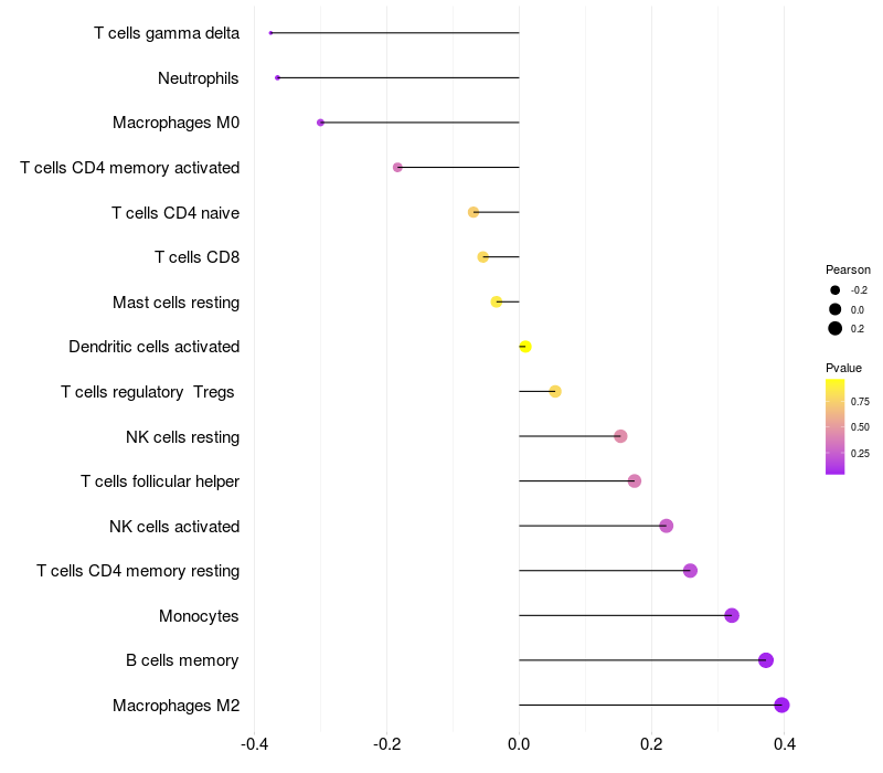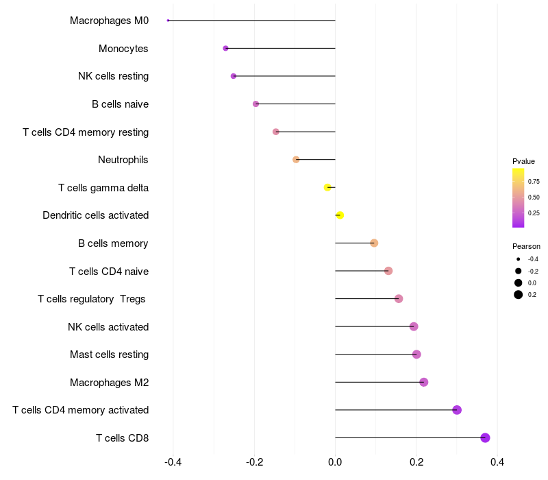 Lollipop of PANX1 expression and immune infiltrating cell level correlation result in HTLV1+ samples