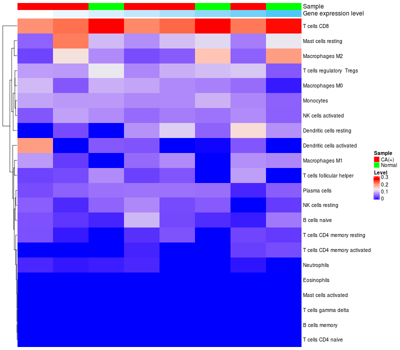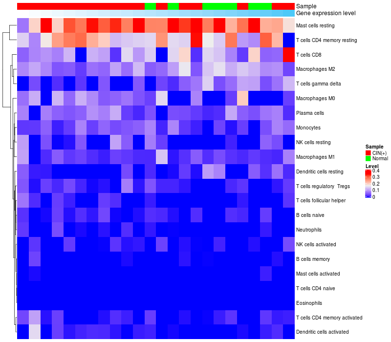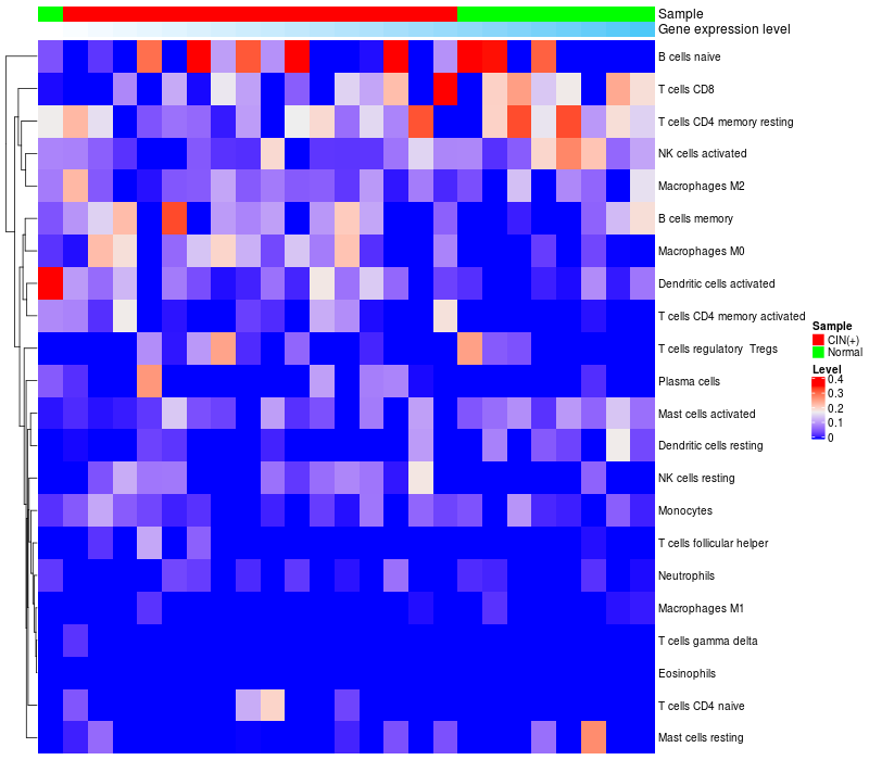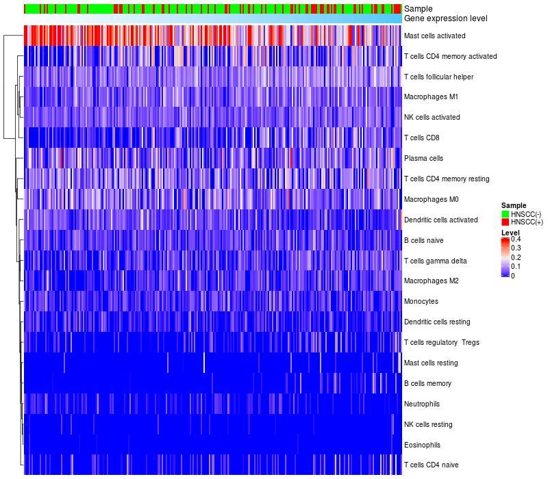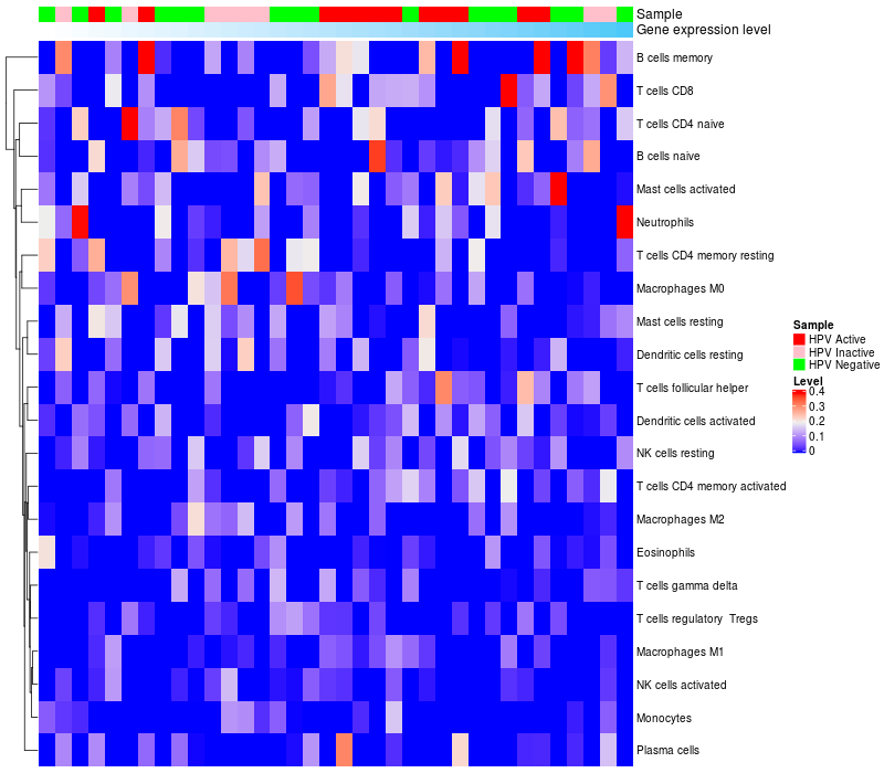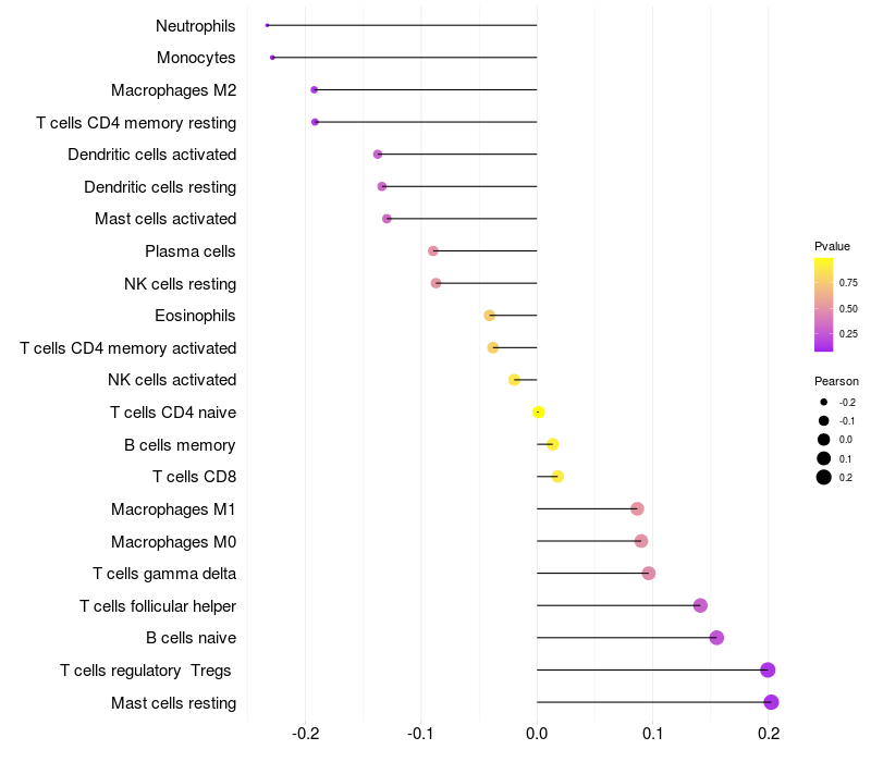 Lollipop of PAQR8 expression and immune infiltrating cell level correlation result in HPV+ samples