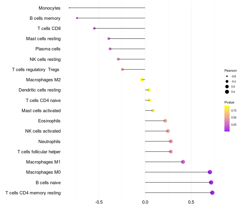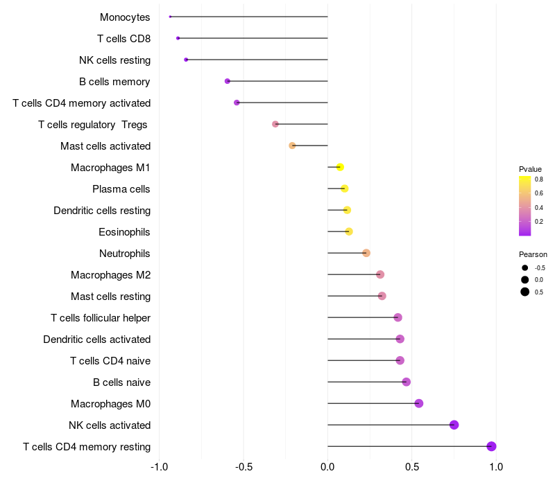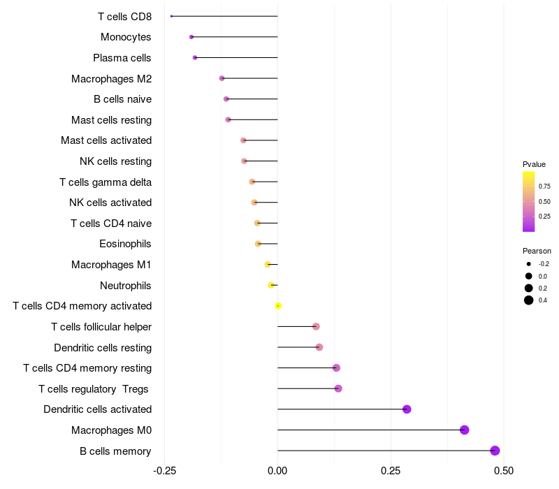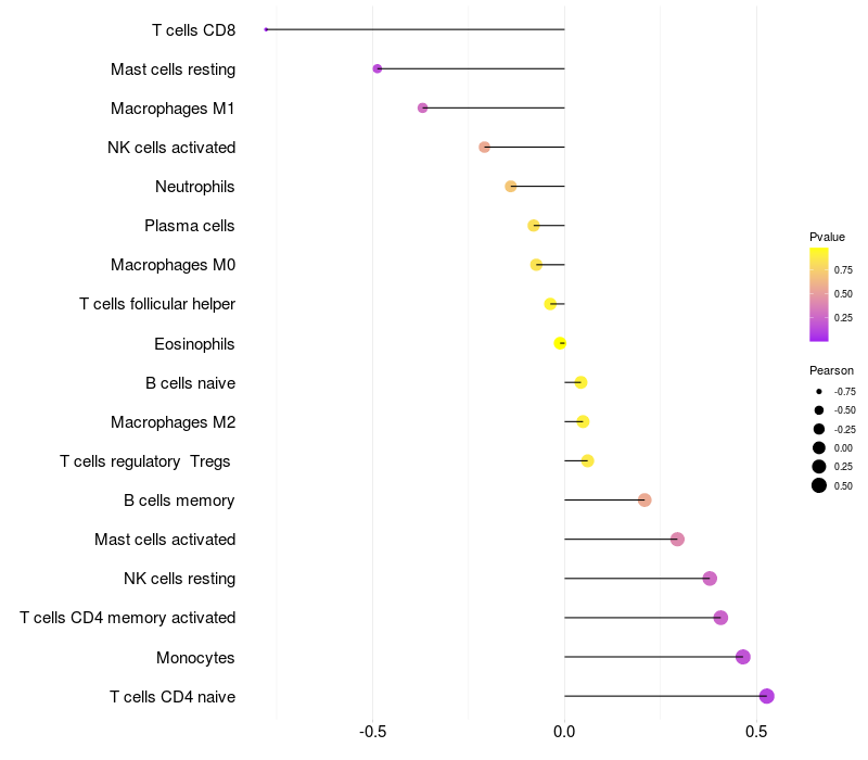 Lollipop of PARD3 expression and immune infiltrating cell level correlation result in HBV+ Liver cirrhosis samples