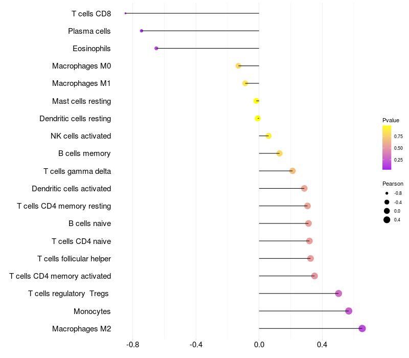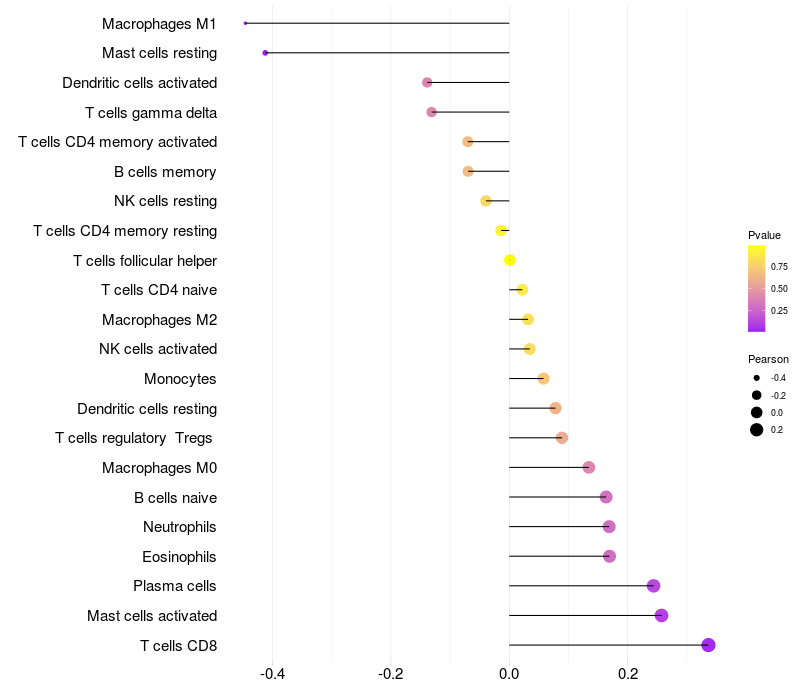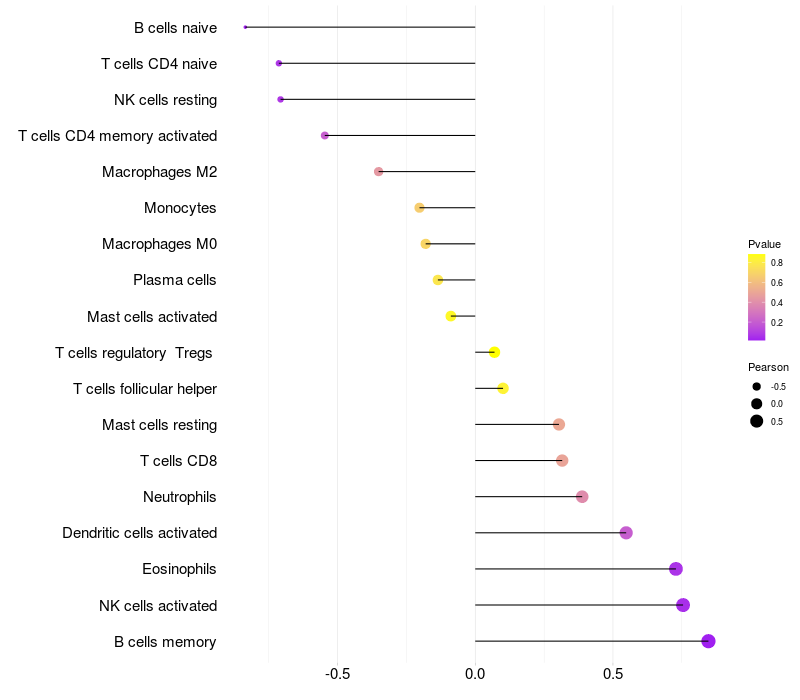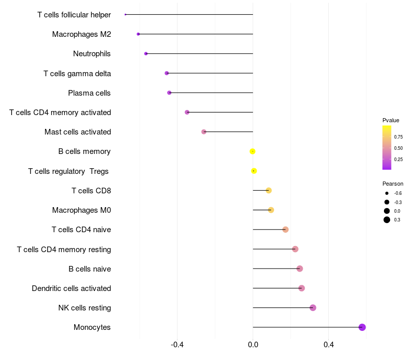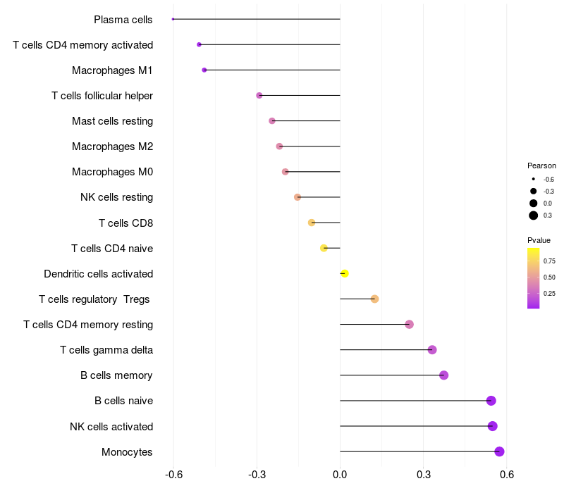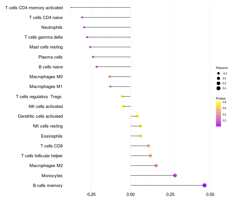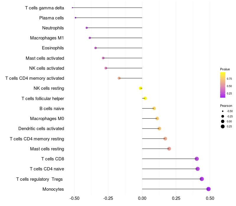 Lollipop of PARL expression and immune infiltrating cell level correlation result in EBV+ samples