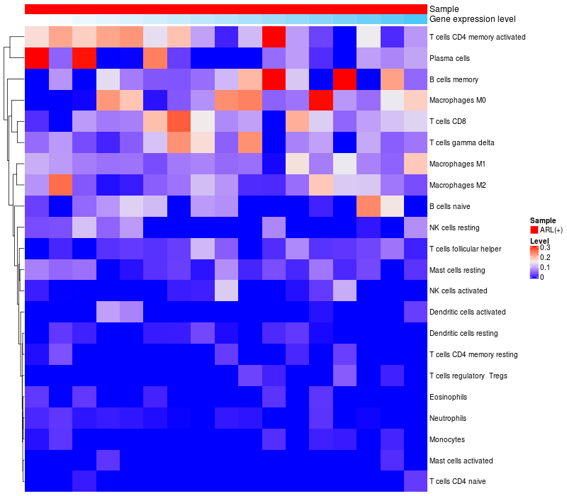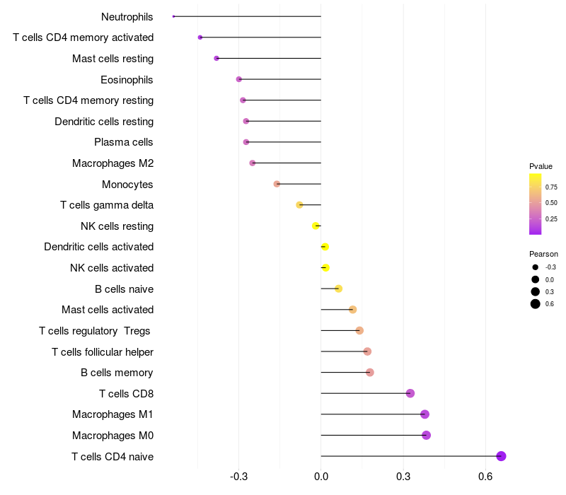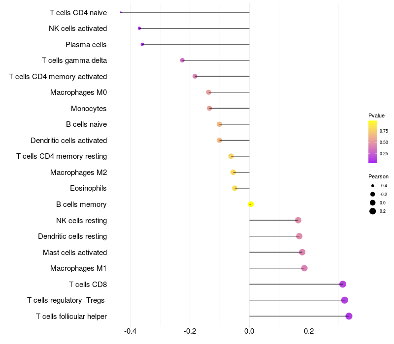 Relationship between gene expression and immune infiltrating cell level