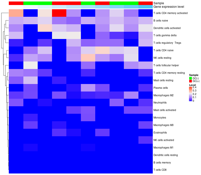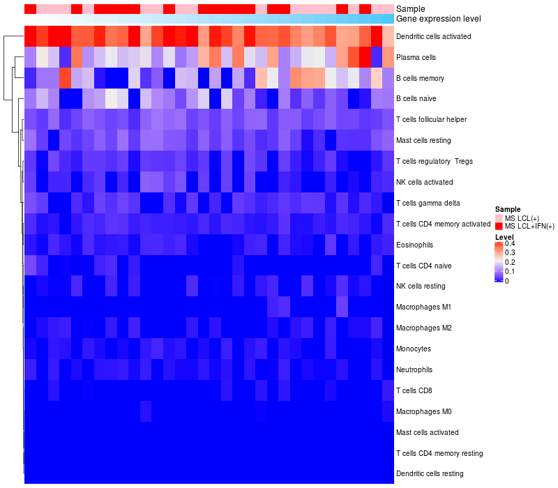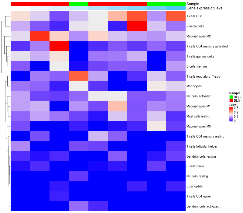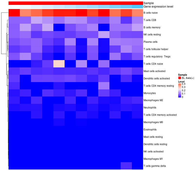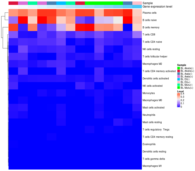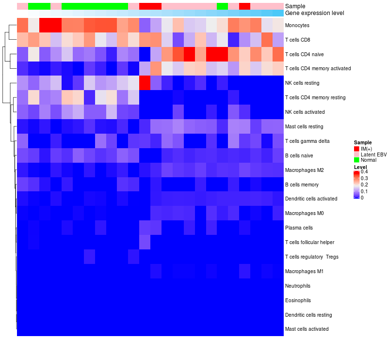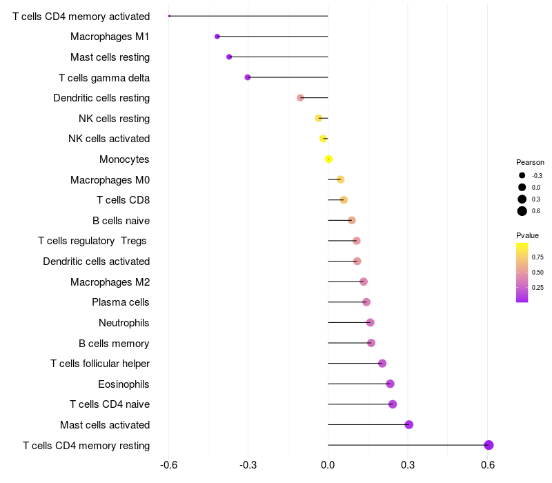 Lollipop of PARVA expression and immune infiltrating cell level correlation result in EBV+ samples
