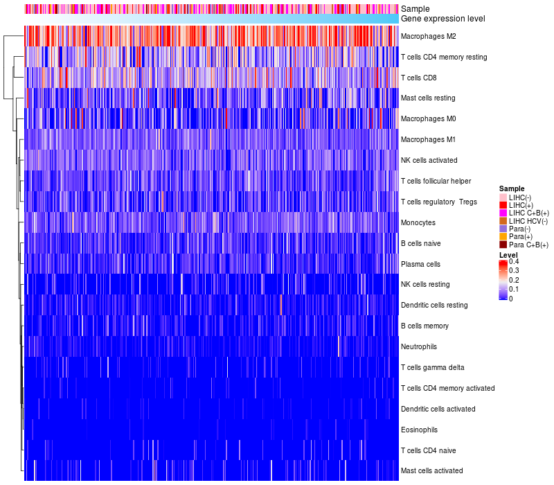 Liver hepatocellular carcinoma HCV (HBV+)(86), Liver hepatocellular carcinoma HCV (HBV-)(19), Liver hepatocellular carcinoma (HBV+)(209), Liver hepatocellular carcinoma (HBV+)(60), Paracancerous HCV (HBV+)(4), Paracancerous (HBV-)(28), Paracancerous (HBV+)(18) |