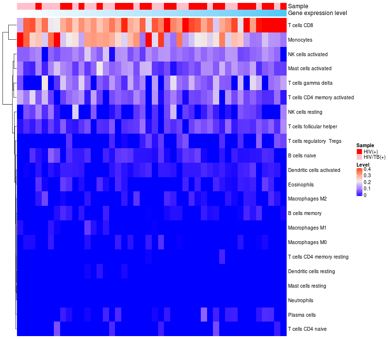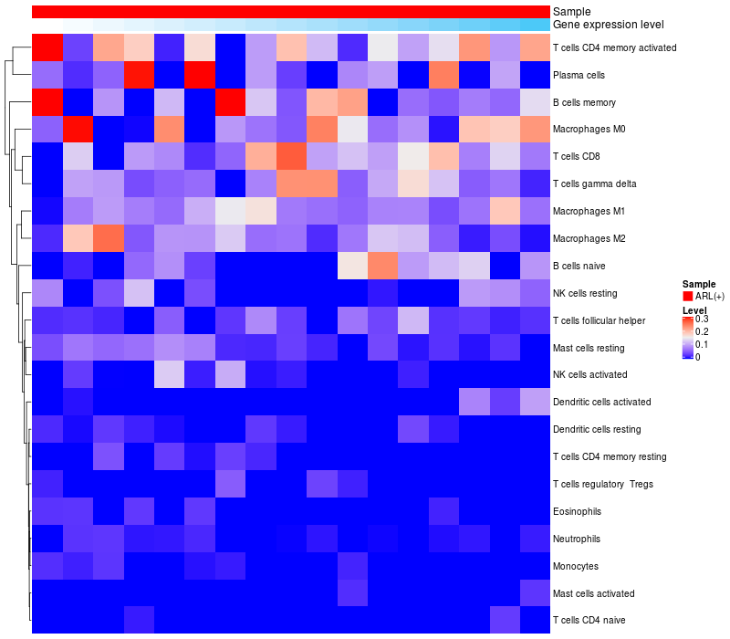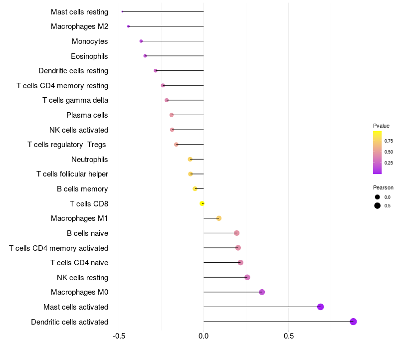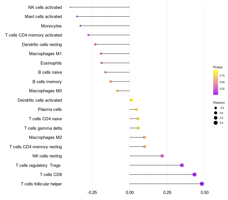 Relationship between gene expression and immune infiltrating cell level
