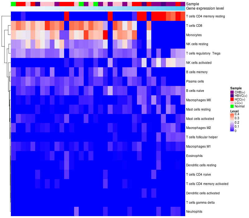 Chronic hepatitis B patients (HBV+)(10),Hepatocellular carcinoma (HBV+)(10),Liver cirrhosis(HBV+)(10),Normal(3),HBV carriers (3) |